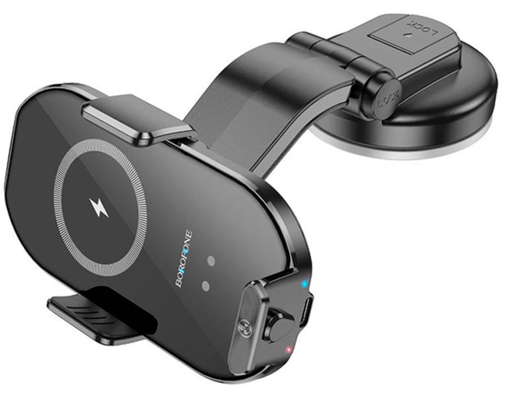 | Матеріал міцний пластик Тримач-затискач(ширина 60-85мм) Бездротова зарядка Кабель USB / Type-C 1 метр Розміри 130*120*85мм Колір чорний Вага 295грам |