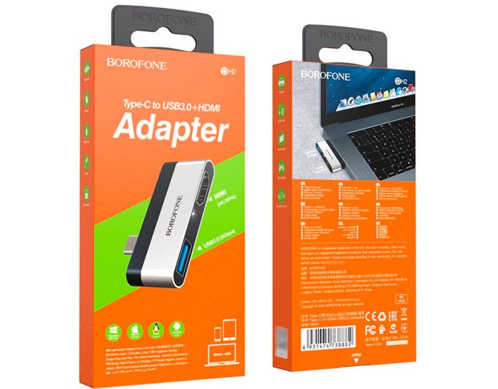 | Опис: Перехідник BOROFONE DH2 Type-C(Male) - USB3.0+2*HDMI, чорний, в упаковці. Характеристики: 1. Тип роз`єму: Type-C(Male) 2. Підтримувані інтерфейси: USB3.0+2*HDMI 3. Колір: чорний 4. Упаковка: коробка |