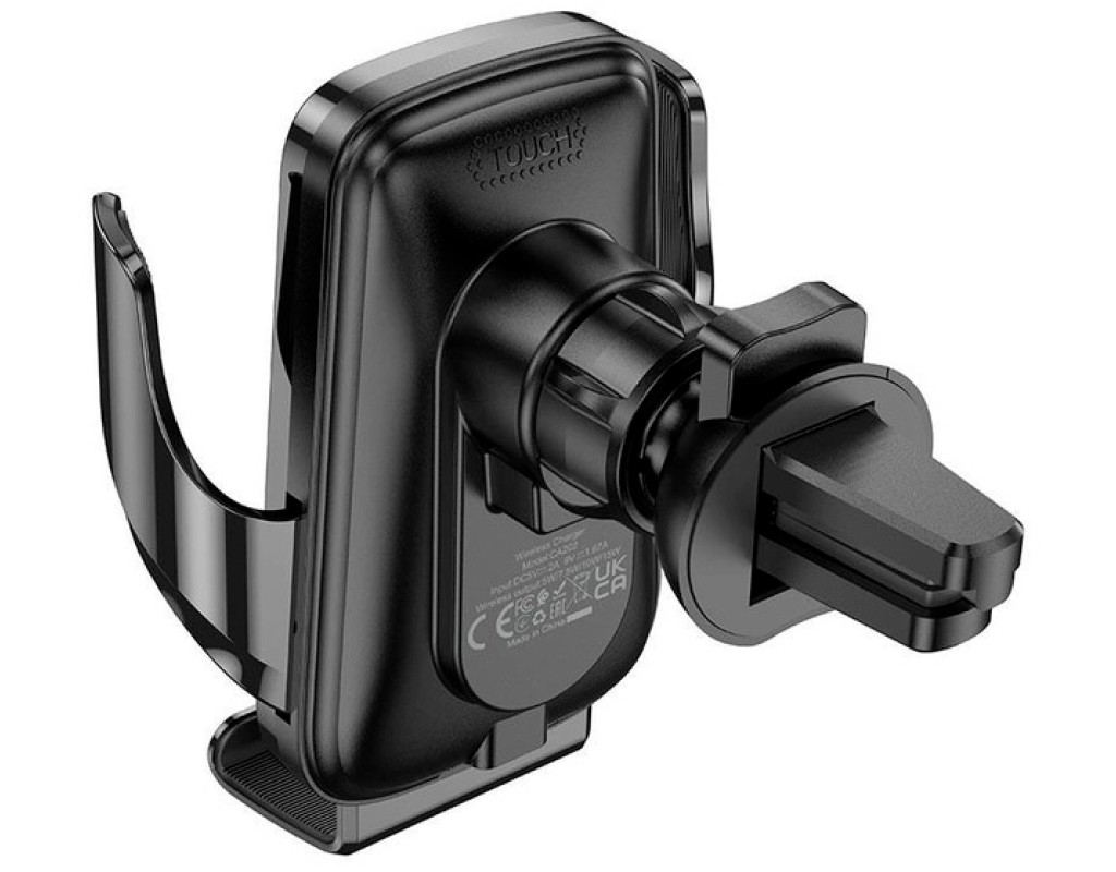 | Матеріал міцний пластик Тримач-затискач(ширина 65-87мм) Кріплення на решітку Бездротова зарядка Кабель USB / Type-C 1 метр Розміри 170*105*73мм Колір чорний Вага 234грам |