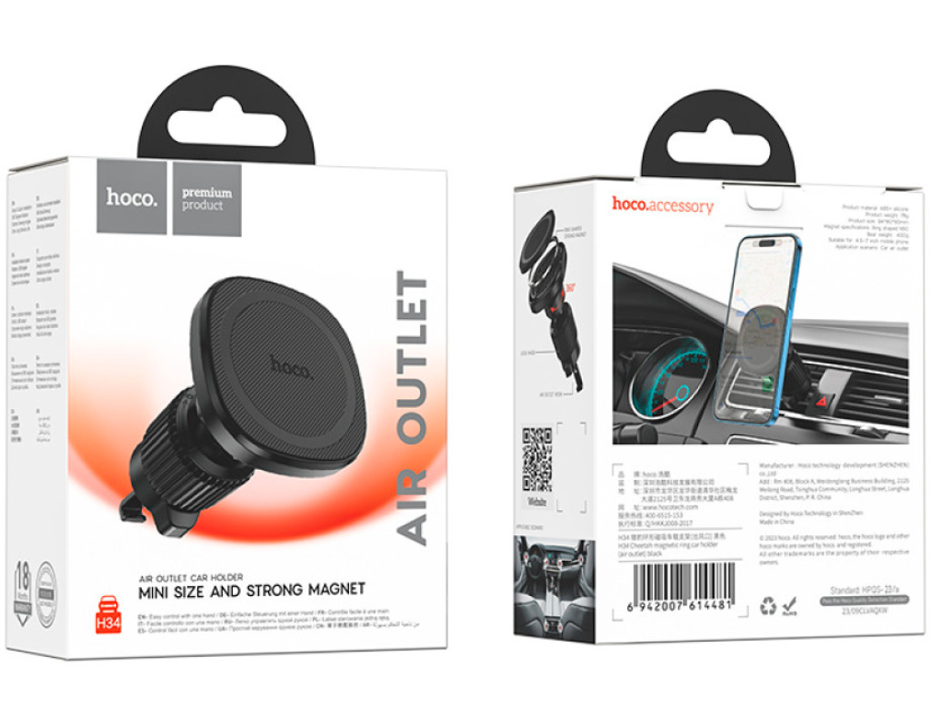 Автотримач HOCO H34, кріплення на решітку, магніт, Black, Box