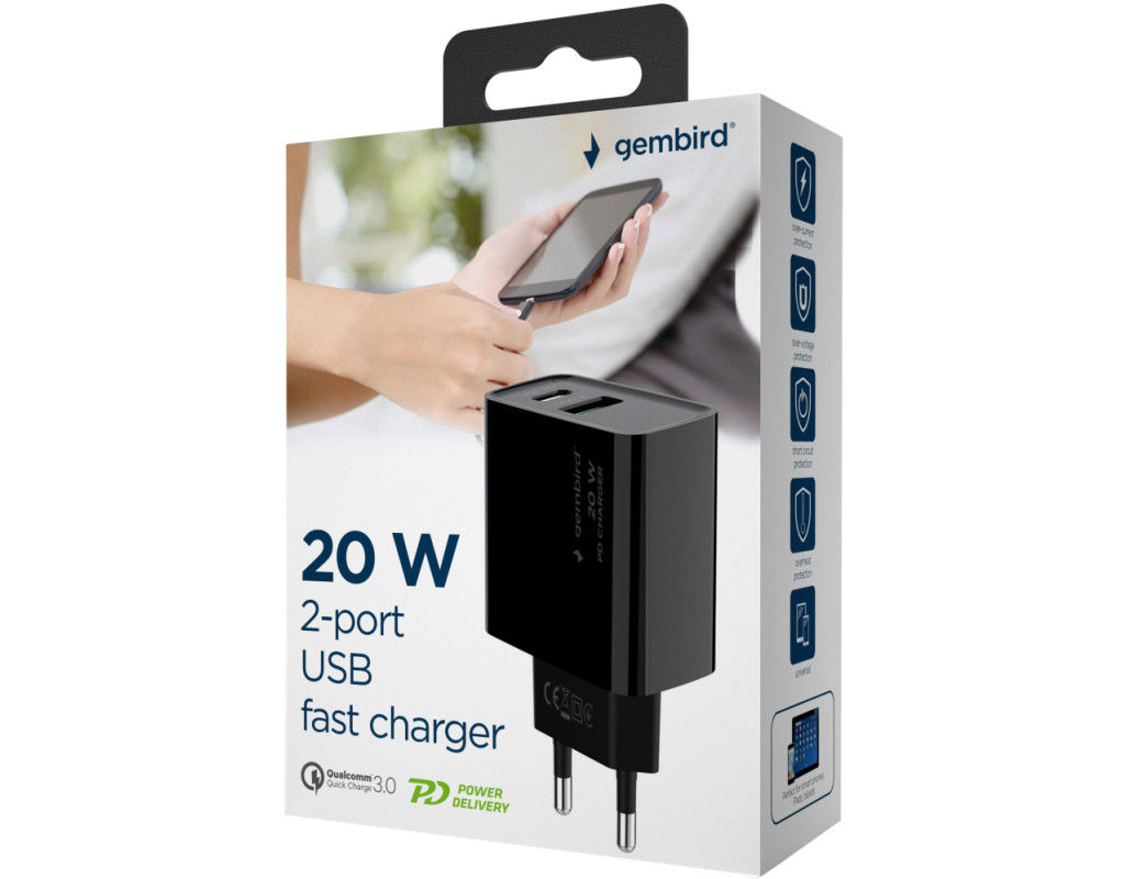| Зарядное устройство Gembird 1xUSB-A + 1 Type-C (PD20Вт + QC3.0 18Вт) black (TA-UC-PDQC20-01-BK) — это универсальное решение для тех, кто ценит скорость и надежность при зарядке любимых устройств. Оснащённое двумя портами — USB-A и USB Type-C, это адаптер оптимально решает потребности зарядки различных гаджетов. От смартфонов до TWS наушников и экшн-камер, Gembird демонстрирует безупречную производительность благодаря поддержке Quick Charge 3.0 и Power Delivery. Мощность этого зарядного устройства достигает 20 Вт, что позволяет восстанавливать энергию ваших устройств в кратчайшие сроки. USB Type-C порт обеспечивает PD на 20 Вт, а USB-A — QC 3.0 до 18 Вт. Это позволяет с лёгкостью адаптировать зарядку под специфические требования ваших гаджетов. Интегрированная умная система защиты гарантирует безопасность: избегание перенапряжения, перегрузок по току, коротких замыканий и перегрева. Это предоставляет потребителям дополнительную уверенность в длительной эксплуатации не только зарядного устройства, но и техники, питающейся от него. Дизайн устройства выполнен в элегантном черном цвете, который соответствует современным трендам и вписывается в любой интерьер или стиль жизни. Компактные размеры и удобство в использовании делают Gembird идеальным выбором как для дома, так и для путешествий. Выбирайте зарядное устройство Gembird для тех, кто стремится к максимальным возможностям и защите в каждой детали! |