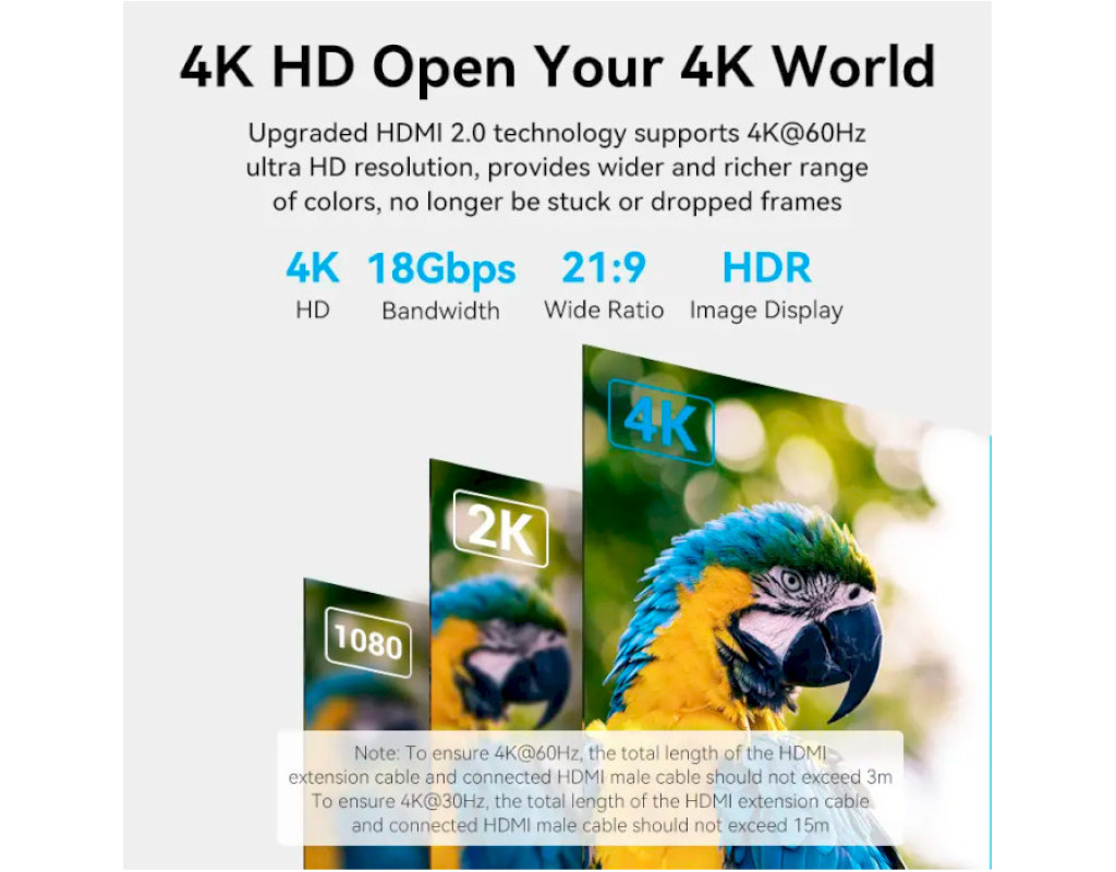 Кабель мультимедийный HDMI M to HDMI F 2.0m V2.0 4K60Hz VENTION (AHCBH)