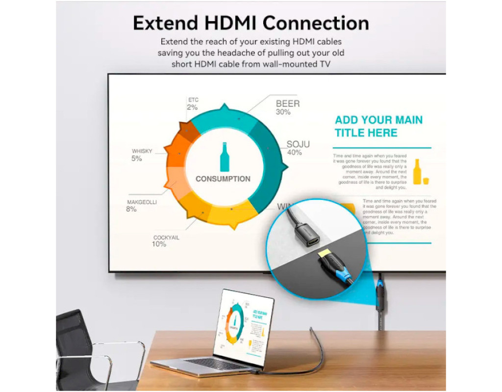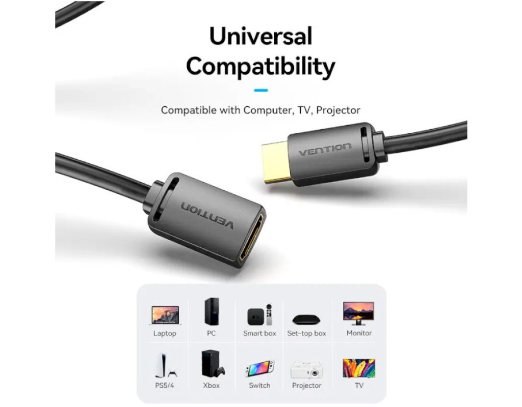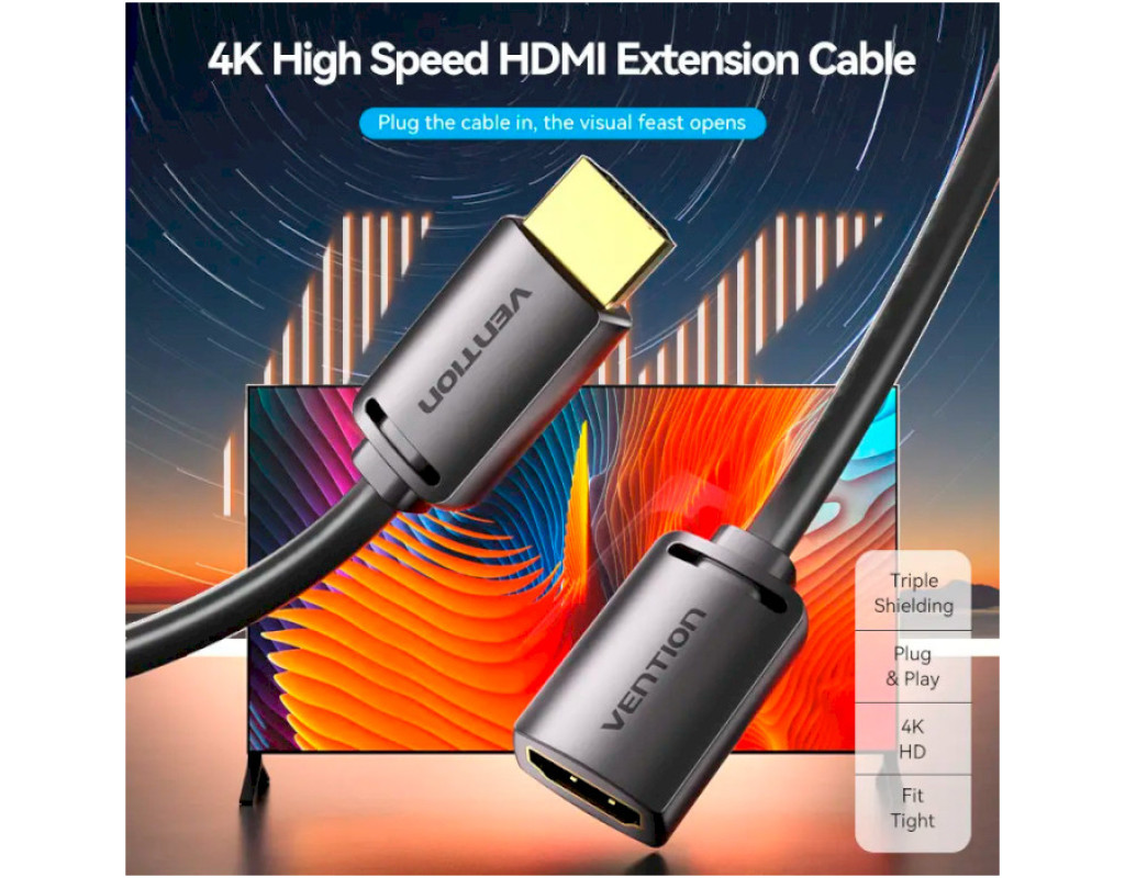 Кабель мультимедийный HDMI M to HDMI F 5.0m V2.0 4K60Hz VENTION (AHCBJ)