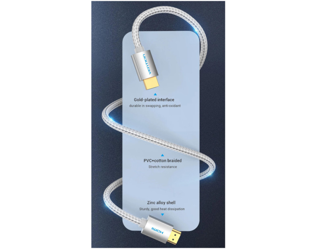 Кабель мультимедийный HDMI M to HDMI M 2.0m V2.0 4K60Hz silver VENTION (AABIH)