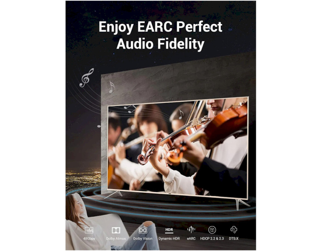 8K 60Hz, материал: ПВХ (поливинилхлорид), позолоченный коннектор