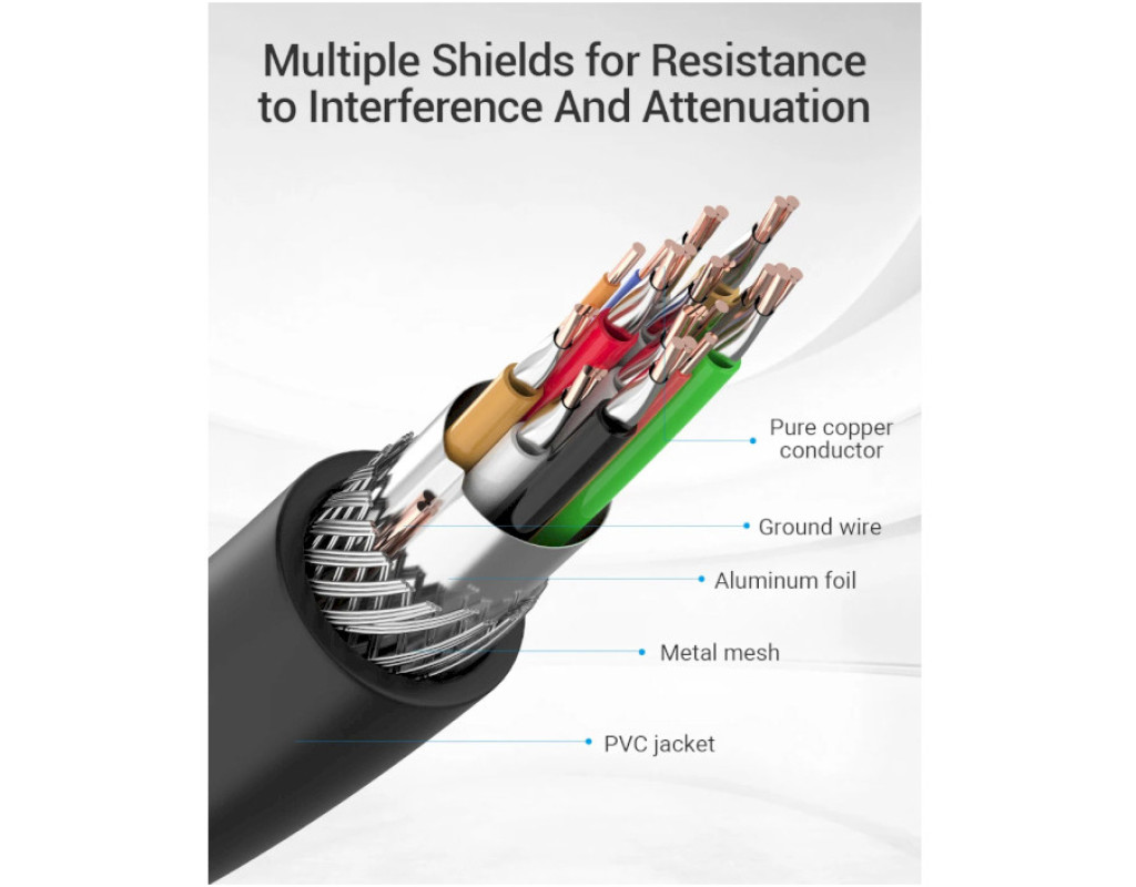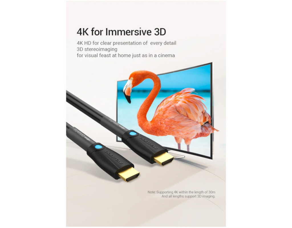 Кабель Vention HDMI Cable for Structure Cabling Engineering - идеальное решение для стабильной передачи HDMI на большие расстояния в различных сценариях прокладки. Независимо от того, работаете ли вы над проекцией с предварительным заглублением, устанавливаете ли сложную систему домашнего кинотеатра или прокладываете кабель по всему офисному зданию, этот HDMI-кабель обеспечивает непревзойденную производительность, долговечность и универсальность. Иммерсивное 3D в формате 4K HDHDMI-кабель Vention разработан для передачи потрясающего разрешения 4K HD с захватывающими 3D-эффектами. Благодаря четкой и яркой цветопередаче каждая деталь передается точно, превращая ваш домашний просмотр в нечто сродни кинематографическому событию. Это визуальное пиршество прямо в вашей гостиной. Стабильная передача сигнала на расстояние до 50 мРазработанный для работы на больших расстояниях, кабель обеспечивает стабильную передачу сигнала на расстояние до 50 метров. Применяемый с усилителем, начиная с 35 метров, он сохраняет высокое качество сигнала на больших расстояниях. Это делает его идеальным выбором для крупных инсталляций, таких как конференц-залы, торговые центры и масштабные инженерные проекты. Прочная и высококачественная конструкцияКабель Vention HDMI, созданный для работы в сложных условиях, оснащен несколькими экранами для защиты от помех и затухания сигнала. Он включает в себя проводник из чистой меди, провод заземления, алюминиевую фольгу, металлическую сетку и прочную оболочку из ПВХ, обеспечивая оптимальную производительность и долговечность. Позолоченный интерфейс улучшает передачу сигнала и обеспечивает устойчивость к ржавчине и окислению, что делает его долговечным при частой замене и длительном использовании. Несколько режимов для удовольствияКабель HDMI Vention поддерживает различные режимы: