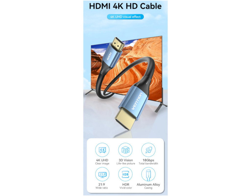 Кабель мультимедийный HDMI M to HDMI M 10.0m V2.0 4K60Hz blue VENTION (ALHSL)