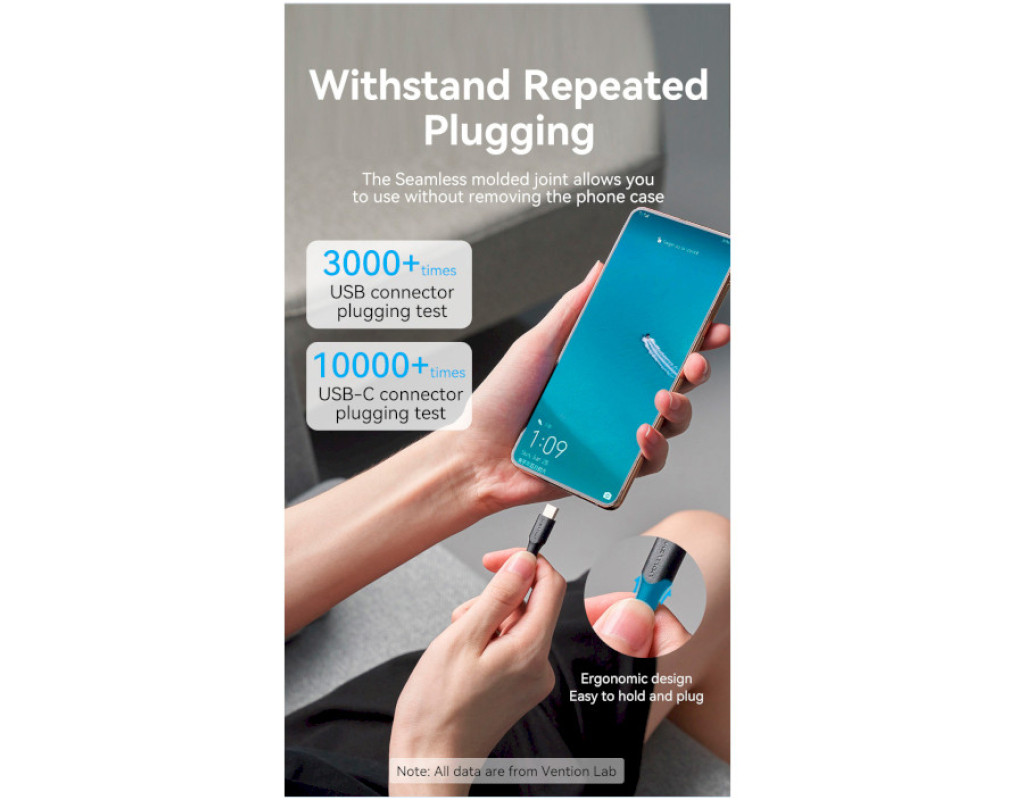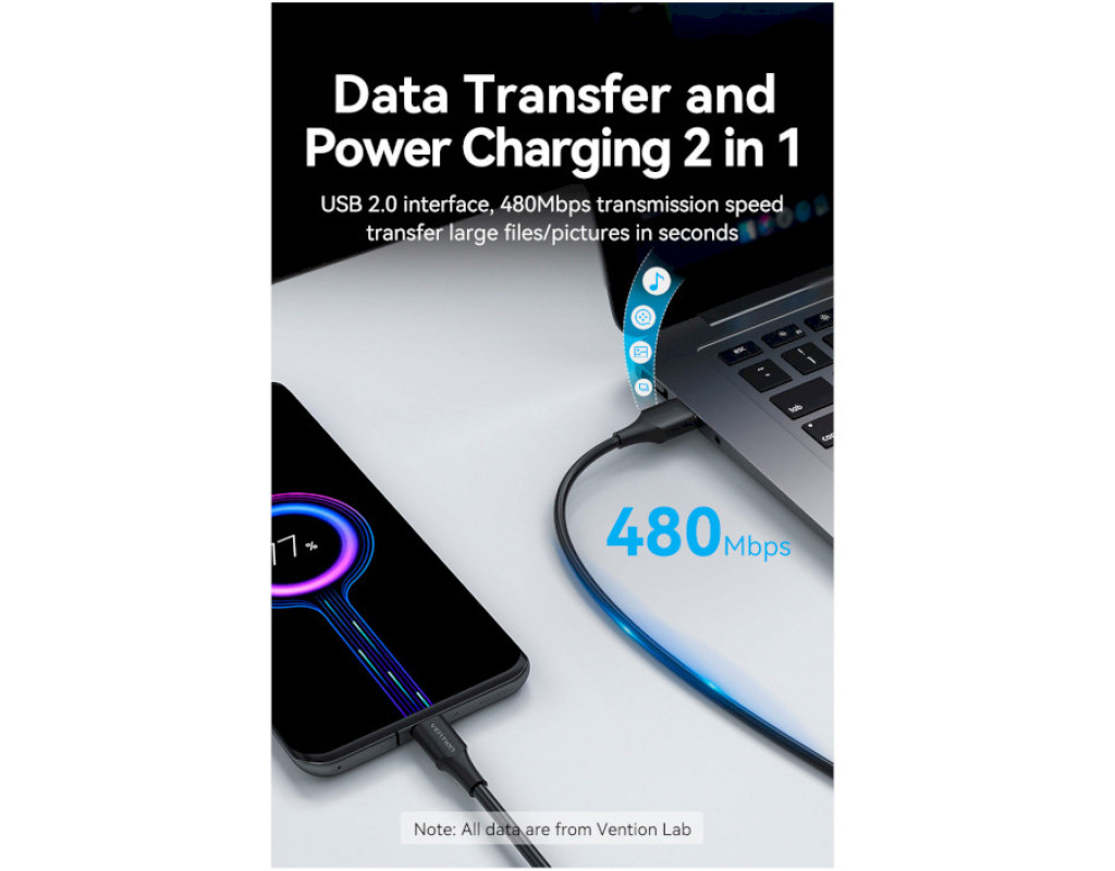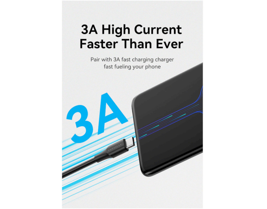 Дата кабель USB 2.0 AM to USB-C 1.5m 3.0A 18W PVC black VENTION (CTHBG)