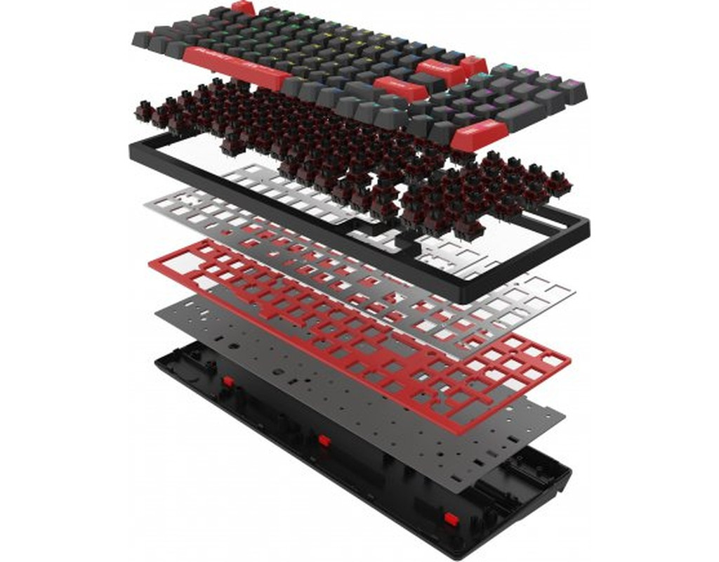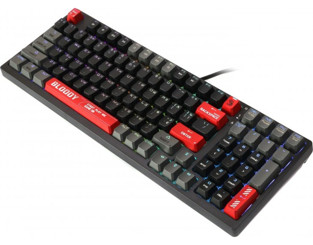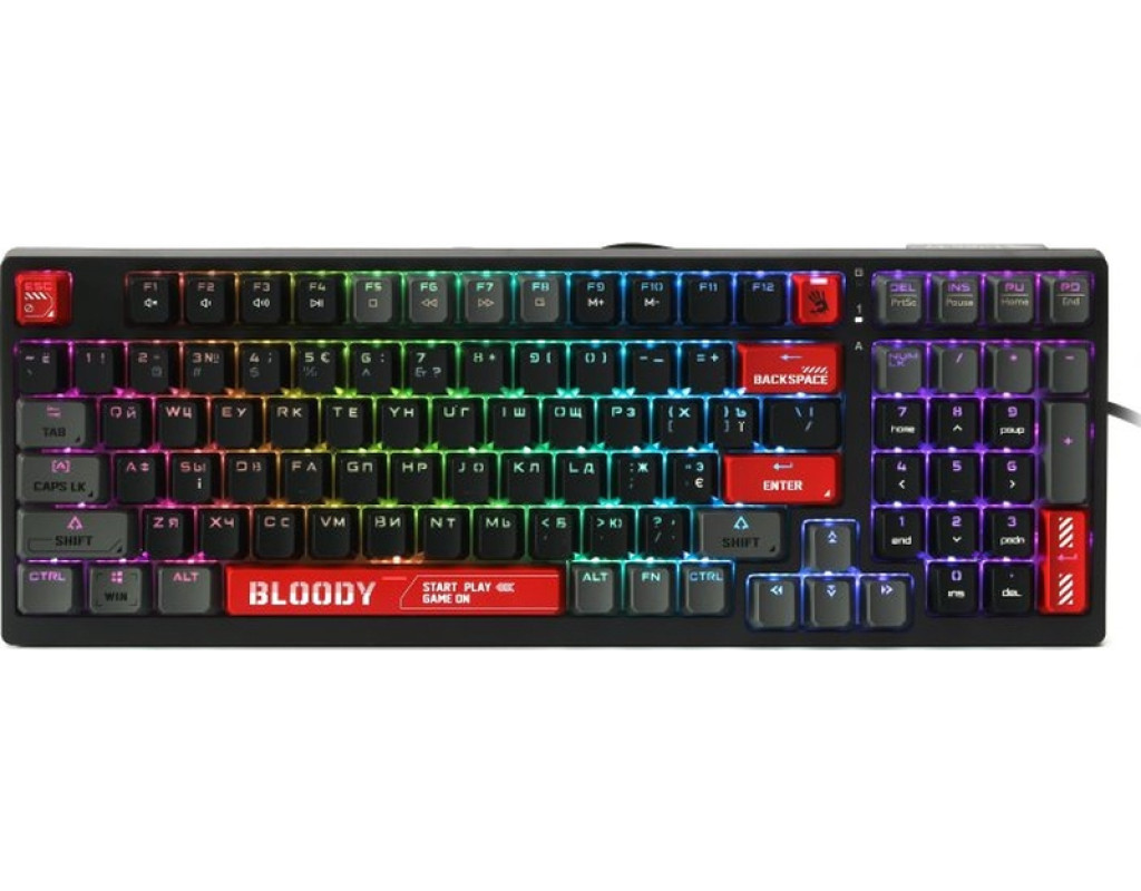| Клавиатура A4Tech Bloody S98 RGB BLMS Red USB Bloody Red (4711421991674) является идеальным выбором для тех, кто ищет мощный инструмент для игры и работы. Эта механическая клавиатура с сложной конструкцией и отличным дизайном создана для обеспечения наилучшего комфорта и производительности. Одним из главных преимуществ этой клавиатуры являются линейные механические переключатели Bloody BLMS. Они настроены так, чтобы обеспечить сверхточную и быструю реакцию во время игр, создавая впечатляющий опыт для геймеров. Силиконовые накладки на клавишах значительно снижают шум при наборе текста, что делает эту клавиатуру не только эффективной, но и тихой. Благодаря функции горячей замены, пользователи могут быстро менять переключатели, которые работают как с 3-контактными, так и с 5-контактными механическими переключателями, что добавляет гибкость в выборе. Клавиши изготовлены из PBT-пластика, что обеспечивает их долговечность и стойкость к износу. Выбор PBT гарантирует долгий срок службы клавиш при сохранении их идеального веса для оперативного отклика. Формат клавиатуры TKL (Tenkeyless) с конструкцией на 98 клавиш позволяет сохранить все необходимые функции, но при этом обеспечивает компактность, что экономит пространство на вашем рабочем месте. RGB-подсветка с возможностью полной персонализации позволяет создать собственный уникальный стиль, благодаря чему работа с клавиатурой превращается в настоящее удовольствие. По умолчанию она предлагает 10 различных эффектов подсветки, которые вдохновляют на настройку. A4Tech Bloody S98 оснащена встроенной памятью объемом 4 Мб, что дает возможность сохранять до семи игровых профилей и переключаться между ними с помощью простых комбинаций клавиш. Это позволяет быстро адаптировать клавиатуру к различным видам игр и задач. Специальная совместимость с ОС Windows обеспечивает легкую интеграцию с любым ПК, подключение же происходит через проводной интерфейс USB, что исключает сбои сигнала. Наличие оптимизированных ножек с двумя уровнями настройки позволяет регулировать угол наклона клавиатуры под индивидуальные потребности. Благодаря своему исключительному функционалу, стильному дизайну и мощной технологической базе, клавиатура A4Tech Bloody S98 RGB BLMS Red является безупречным решением для современных пользователей, упрощая каждое нажатие клавиш в эффективное и приятное взаимодействие. |