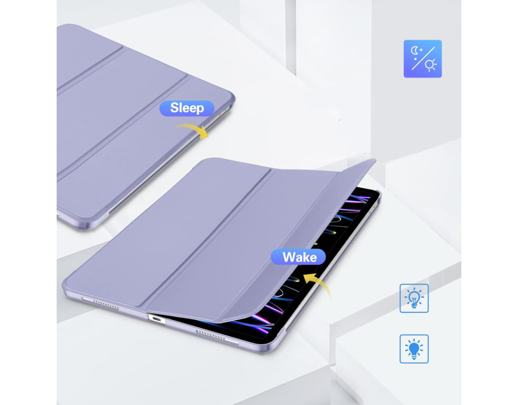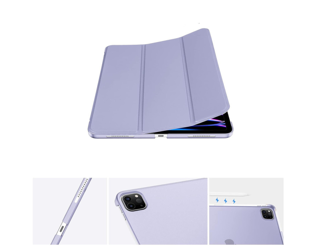 "Чехол-книга Tri Fold Hard BeCover, изготовлен из качественной искусственной кожи, задняя крышка из полупрозрачного пластика. Оснащен стойкой подставкой: передняя крышка с двойным положением легко превращается в подставку для максимально комфортного набора текста на клавиатуре, просмотра видео и видеозвонков. Если вы используете планшет для работы, этот аксессуар будет верным помощником." |