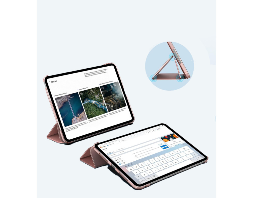Чехол-книга Tri Fold Hard BeCover, изготовлен из качественной искусственной кожи, задняя крышка из полупрозрачного пластика. Оснащен стойкой подставкой: передняя крышка с двойным положением легко превращается в подставку для максимально комфортного набора текста на клавиатуре, просмотра видео и видеозвонков. Если вы используете планшет для работы, этот аксессуар будет вам верным помощником. |