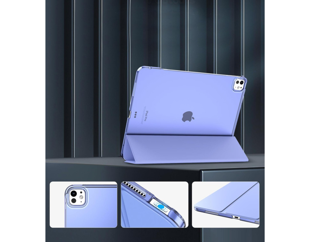 Чехол-книга Tri Fold Hard BeCover, изготовлен из качественной искусственной кожи, задняя крышка из полупрозрачного пластика. Оснащен стойкой подставкой: передняя крышка с двойным положением легко превращается в подставку для максимально комфортного набора текста на клавиатуре, просмотра видео и видеозвонков. Если вы используете планшет для работы, этот аксессуар будет вам верным помощником. |