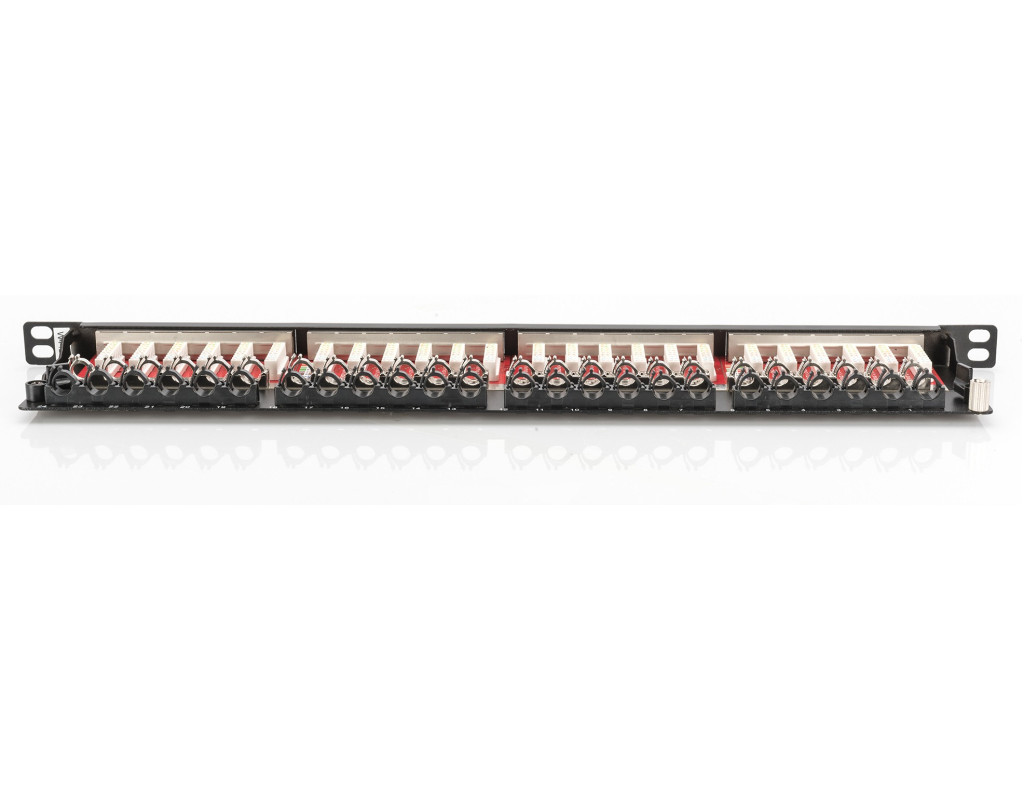 | DIGITUS CAT 6a Class EA патч-панель, экранированная. Очень компактный (только 0.5U) – с пылепредохранительными колпачками – отличные работоспособность и качество связи для сети. |