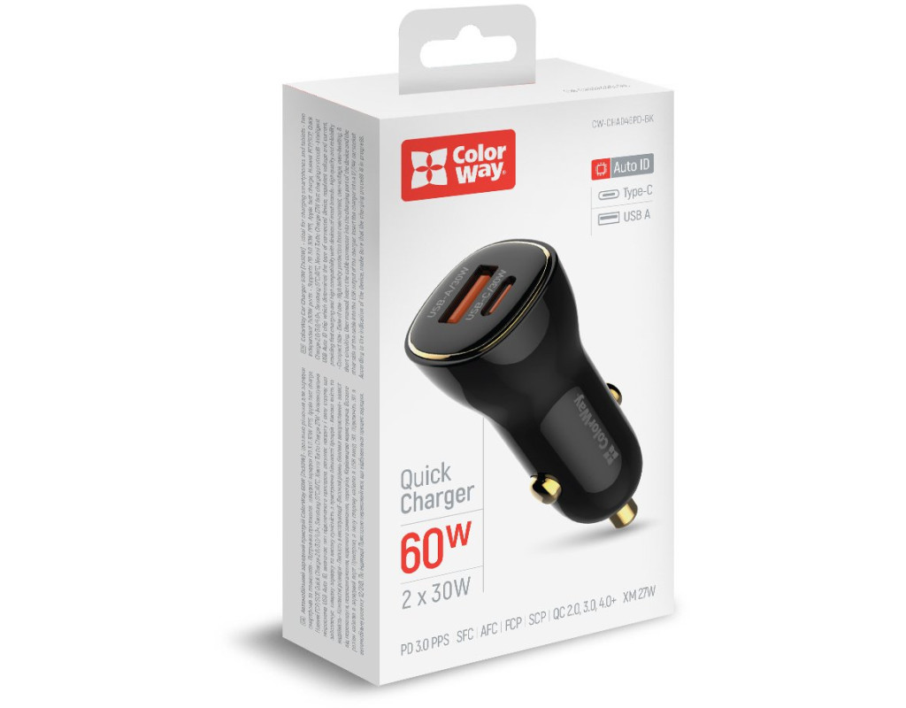 Автомобильное зарядное устройство PPS USB (USB-A+USB-C) (60W) – идеальный вариант компактного и мощного зарядного устройства для использования в автомобиле. Он оснащен двумя независимыми портами USB-А и USB-C (30W+30W), поддерживающими практически все современные технологии быстрой зарядки, такие как Quick Charge 2.0/3.0/4+, PD (Power Delivery) 2.0/3.0, PPS, Apple Fast Charge, Huawei FCP/SCP, Samsung SFC/AFC, Xiaomi Turbo Charge 27W.. Благодаря интеллектуальной зарядке устройство быстро и безопасно может одновременно заряжать до двух мобильных устройств: смартфонов, планшетов, внешних батарей и других гаджетов. Интеллектуальная микросхема USB Auto ID определяет тип подключенного устройства, регулирует напряжение и силу тока, обеспечивает быструю зарядку и высокую совместимость с устройствами большинства брендов. Устройство также имеет высокую безопасность благодаря защите от перенапряжения, нагрузки, короткого замыкания и перегрева. Его корпус крепок и противопожарен. Особенности