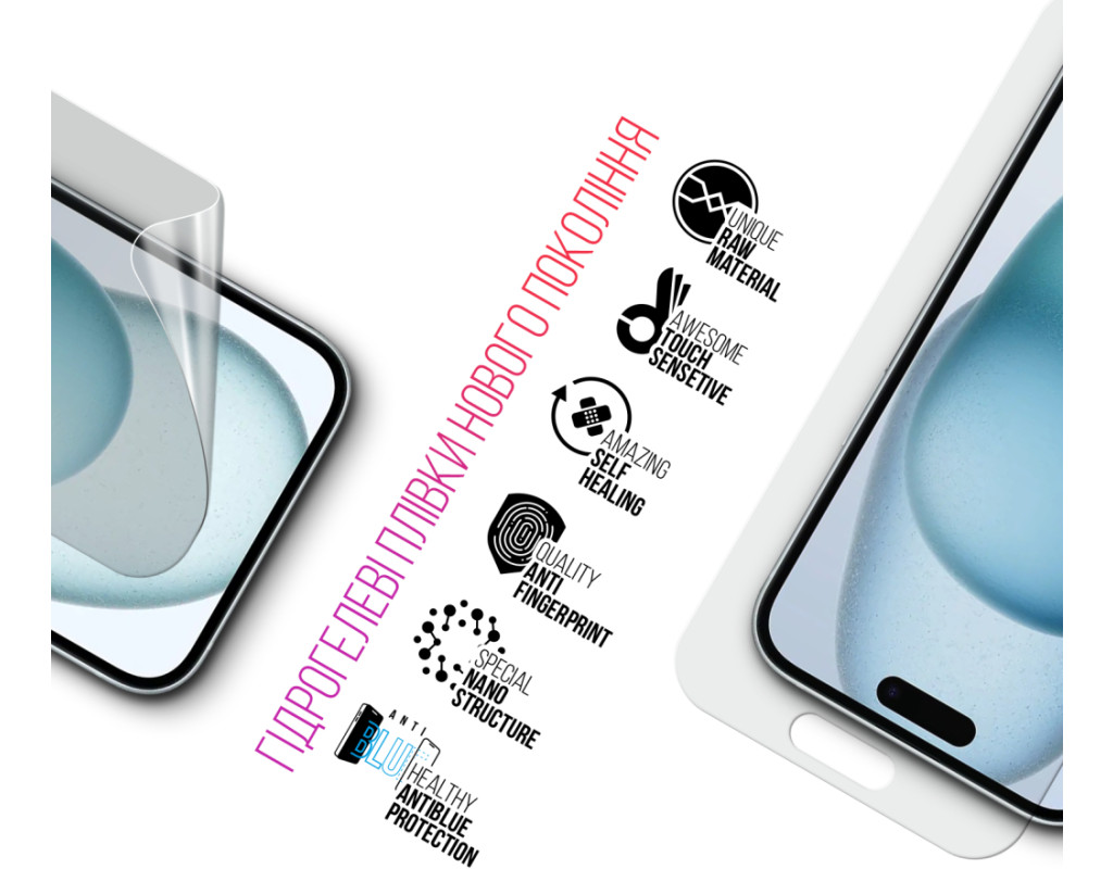 Назначение - для телефона, Вид покрытия - защитное, гидрогелевая, Совместимость с моделями - Apple iPhone 15 Plus, Количество в упаковке - 2 шт
