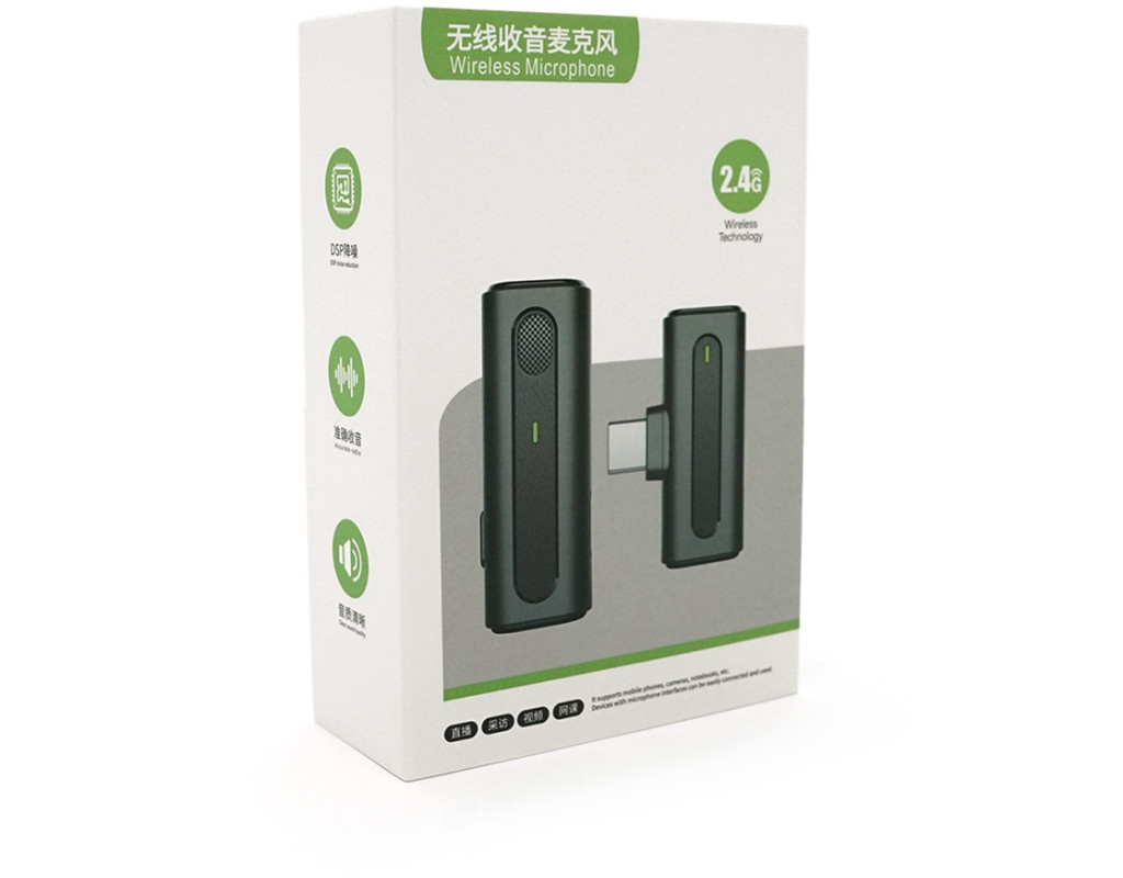 Петличний бездротовий мікрофон M9+ у кейсі, роз'єм Type-C, вбудований акумулятор 80 mAh, Black, Box