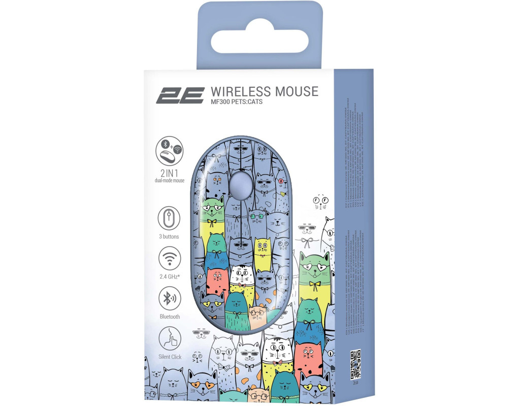 | 2E MF300 — яркий выбор для мобильных профессионалов и технологических энтузиастов, ищущих удобство без компромиссов. Эта беспроводная мышь с незаурядным дизайном обеспечивает функциональность и удобство: имеет два режима подключения — с помощью адаптера 2.4G или через Bluetooth 3.0/5.0; совместима с устройствами на базе Windows, Android, macOS и Linux.