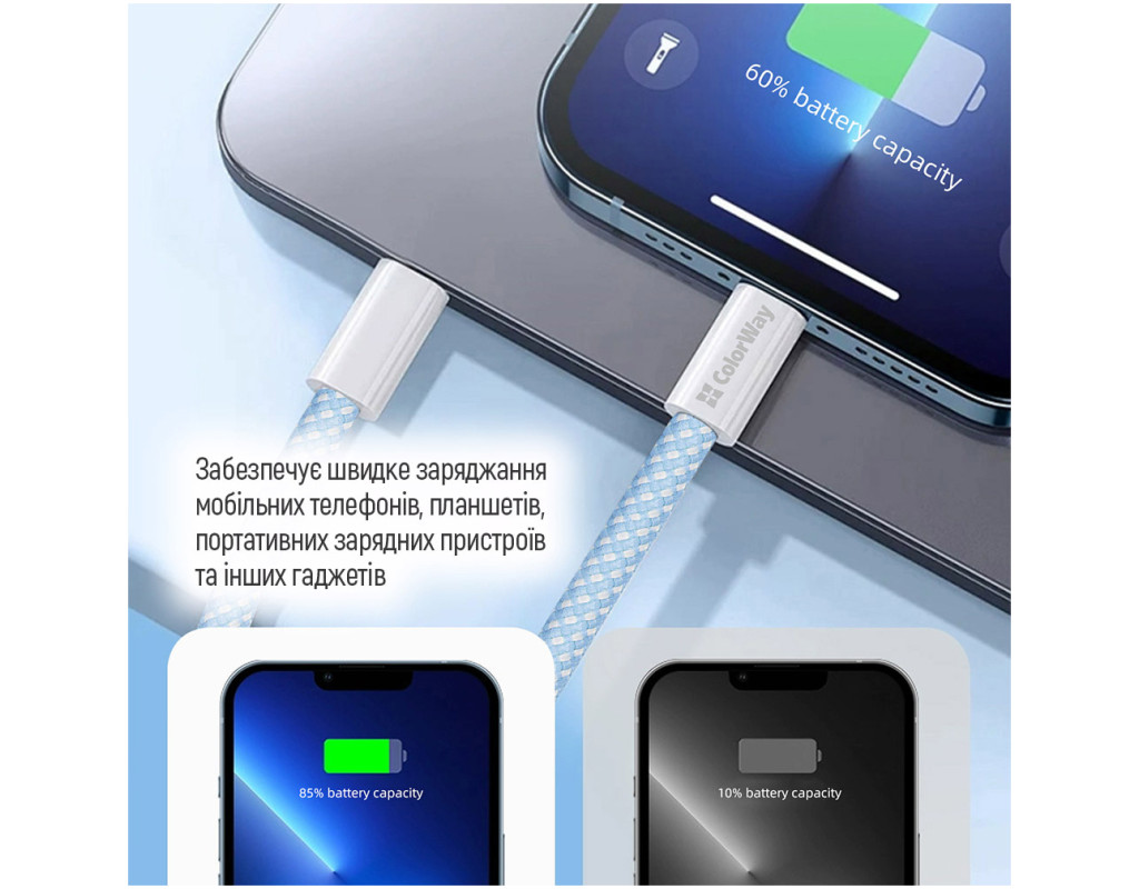 Кабель синхронизации ColorWay USB-C to USB-C (60W) – это высокотехнологичный и надежный аксессуар для комфортной синхронизации и зарядки устройств. Он идеально подходит для зарядки MacBook с портом USB-C или Thunderbolt 3 (USB-C) на MacBook Pro. Поддержка быстрой зарядки Samsung и Xiaomi позволяет значительно сократить время зарядки, особенно при использовании с адаптерами мощностью 18Вт, 20Вт, 25Вт, 30Вт или 65Вт. Прочное уникальное плетение кабеля предохраняет его от износа и изломов во время длительного использования. Интеллектуальная микросхема автоматически регулирует ток и предохраняет устройство от перепадов напряжения и короткого замыкания. Длина кабеля 1 метр обеспечивает удобство синхронизации. Высококачественные материалы, из которых изготовлен кабель, обеспечивают долговечность и длительный срок службы. Благодаря широкому выбору цветов (черный, синий, зеленый, серый, розовый, фиолетовый), вы легко найдете кабель, подходящий для вашего устройства. Особенности