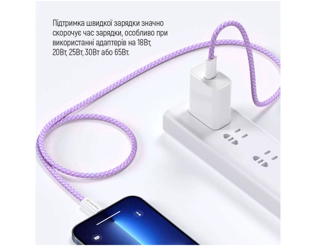 Кабель синхронизации ColorWay USB-C to USB-C (60W) – это высокотехнологичный и надежный аксессуар для комфортной синхронизации и зарядки устройств. Он идеально подходит для зарядки MacBook с портом USB-C или Thunderbolt 3 (USB-C) на MacBook Pro. Поддержка быстрой зарядки Samsung и Xiaomi позволяет значительно сократить время зарядки, особенно при использовании с адаптерами мощностью 18Вт, 20Вт, 25Вт, 30Вт или 65Вт. Прочное уникальное плетение кабеля предохраняет его от износа и изломов во время длительного использования. Интеллектуальная микросхема автоматически регулирует ток и предохраняет устройство от перепадов напряжения и короткого замыкания. Длина кабеля 1 метр обеспечивает удобство синхронизации. Высококачественные материалы, из которых изготовлен кабель, обеспечивают долговечность и длительный срок службы. Благодаря широкому выбору цветов (черный, синий, зеленый, серый, розовый, фиолетовый), вы легко найдете кабель, подходящий для вашего устройства. Особенности