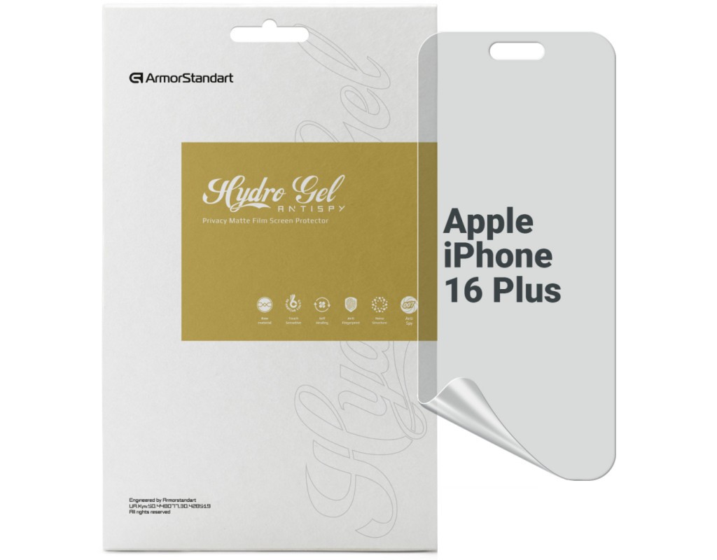 Назначение - для телефона, Вид покрытия - конфиденциальное, защитное, гидрогелевая, Совместимость с моделями - Apple iPhone 16 Plus, Количество в упаковке - 1 шт
