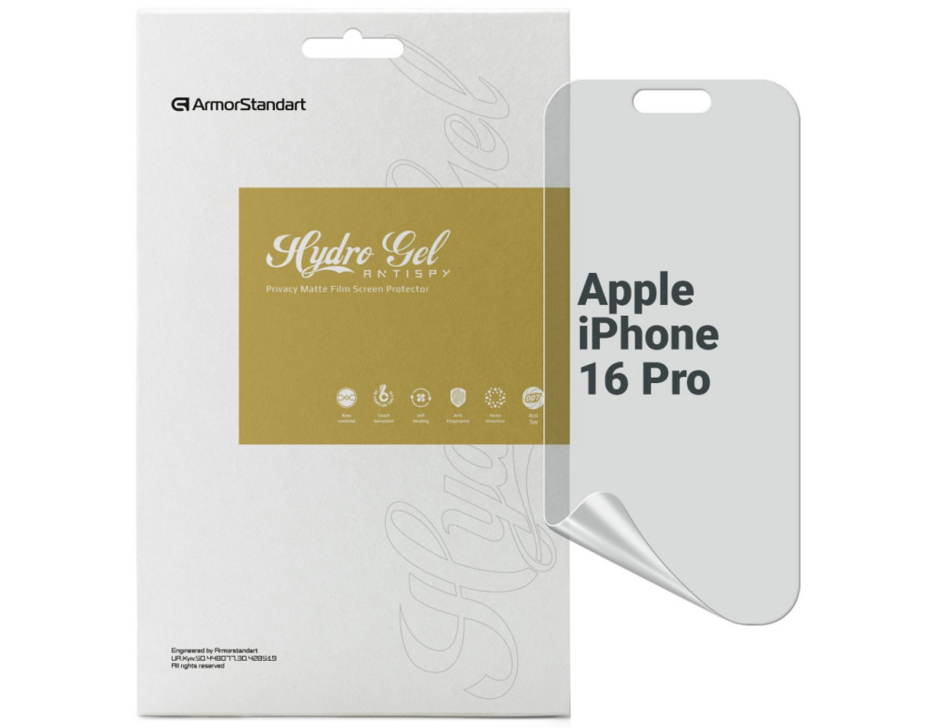 Назначение - для телефона, Вид покрытия - конфиденциальное, защитное, гидрогелевая, Совместимость с моделями - Apple iPhone 16 Pro, Количество в упаковке - 1 шт
