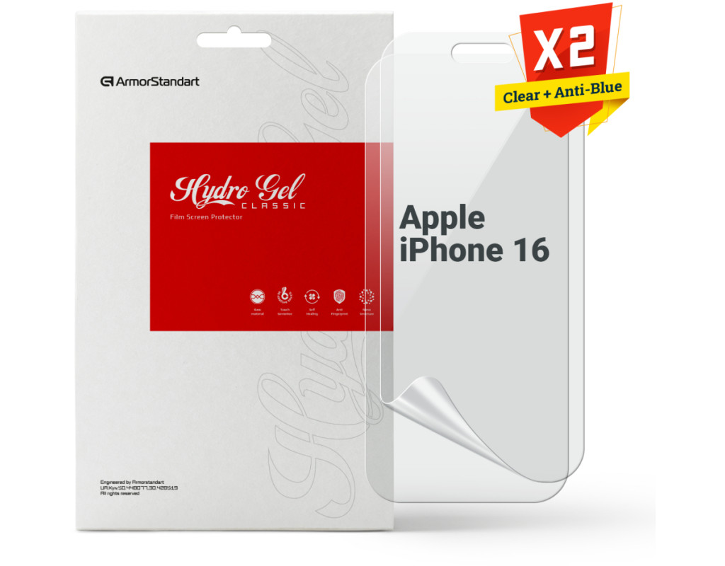 Назначение - для телефона, Вид покрытия - защитное, гидрогелевая, Совместимость с моделями - Apple iPhone 16, Количество в упаковке - 2 шт