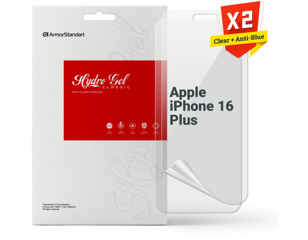 Назначение - для телефона, Вид покрытия - защитное, гидрогелевая, Совместимость с моделями - Apple iPhone 16 Plus, Количество в упаковке - 2 шт