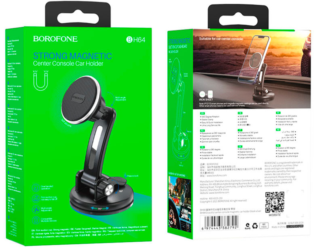 Автотримач BOROFONE BH64, кріплення на торпеду, магніт, Black, Box