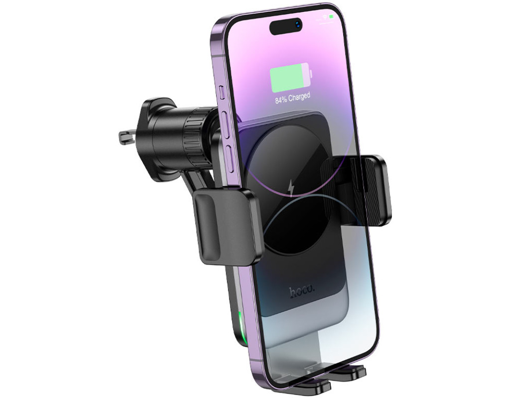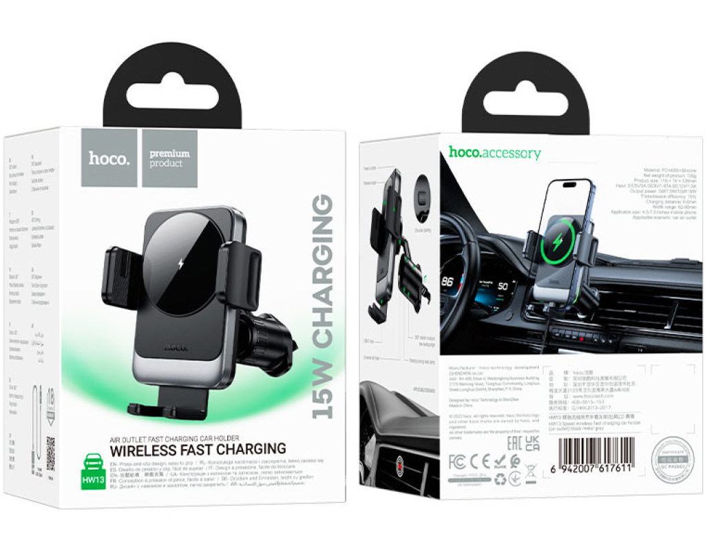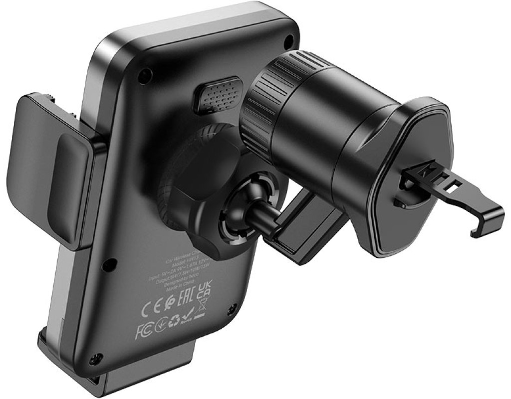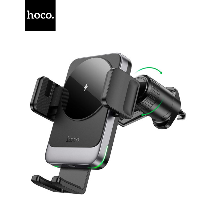 Автоутримувач HOCO HW13+ Wireless Charging 15W, кріплення на решітку, затискач 50-90мм, Black, Box