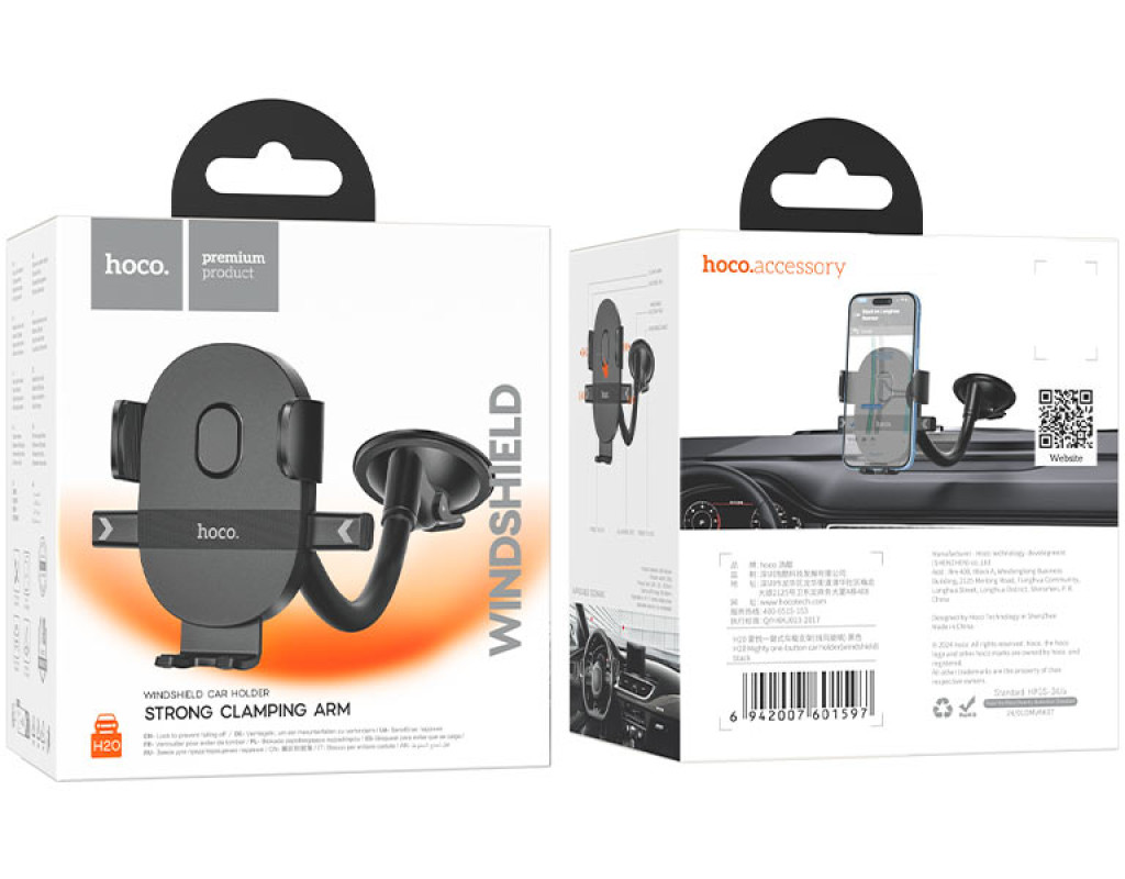 Автоутримувач HOCO H20, кріплення на скло, затискач 55-85мм, Black, Box