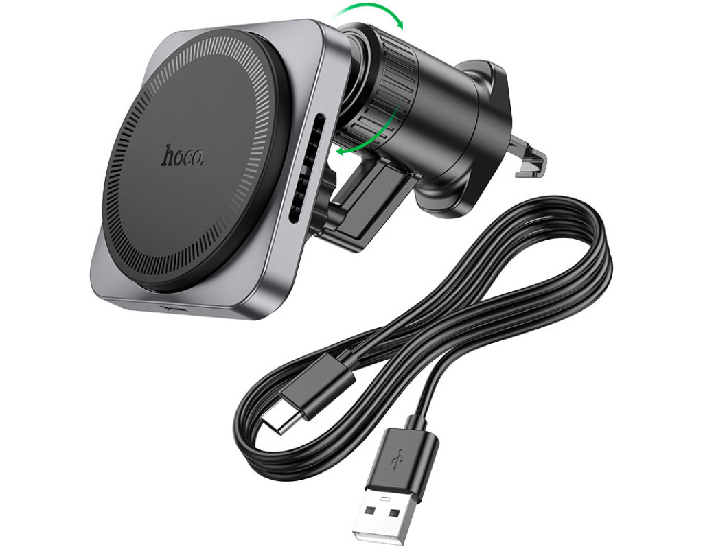Автотримач HOCO HW15+ Wireless Charging 15W, кріплення на решітку, магніт, Black, Box