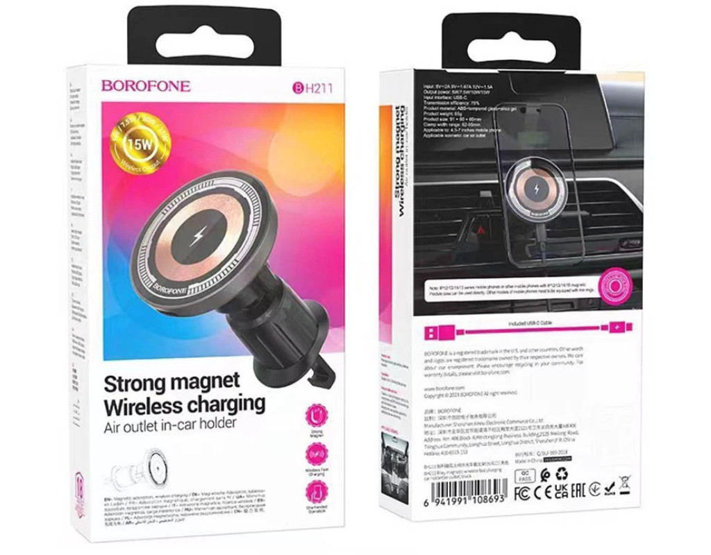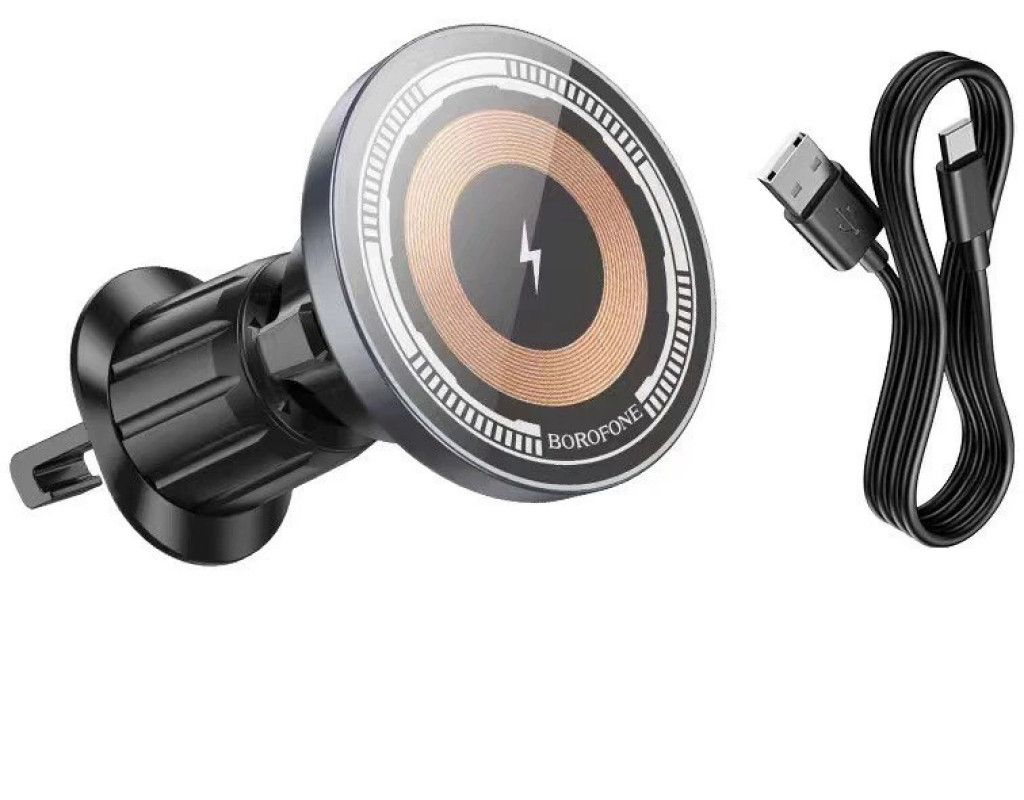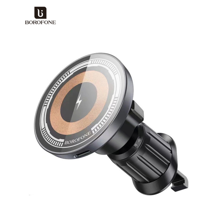 Автотримач BOROFONE BH211+ Wireless Charging 15W, кріплення на решітку, магніт, Black, Box