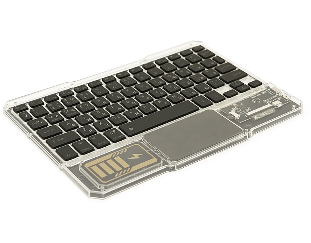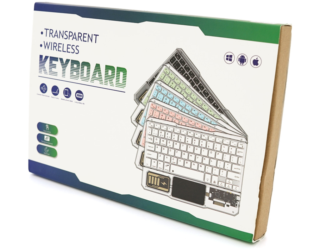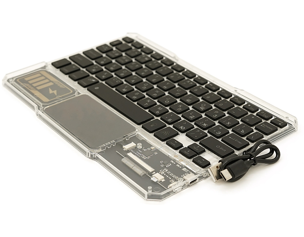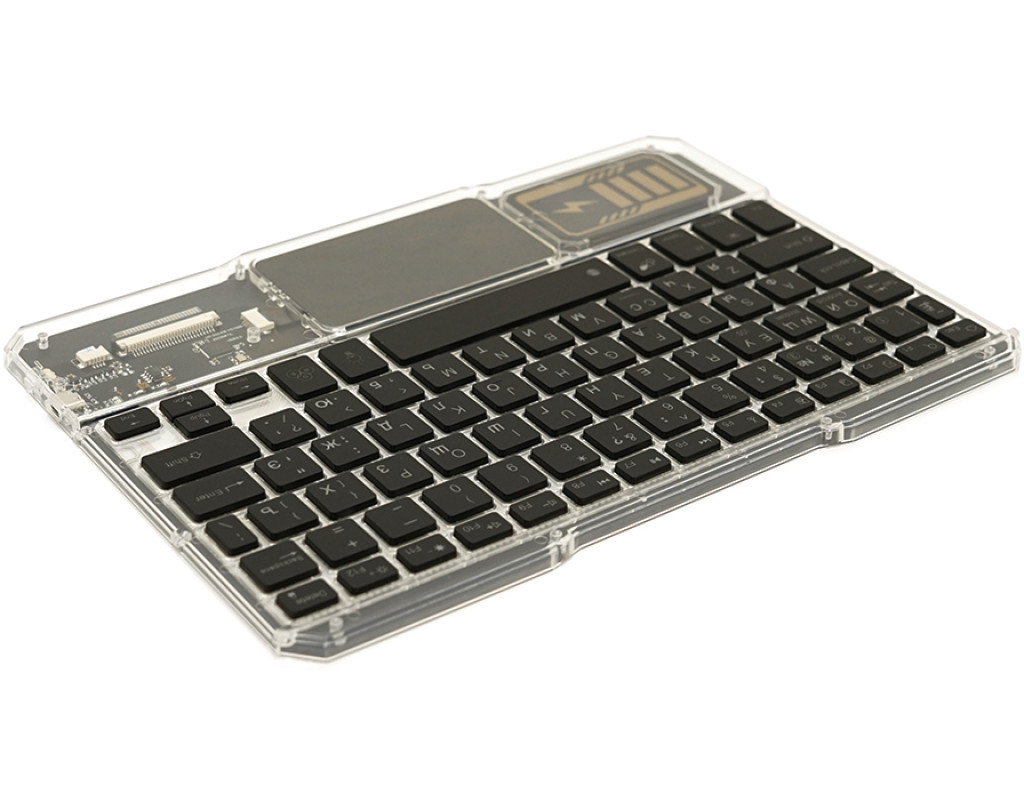 Клавіатура бездротова YT-K333, розкладна, 78 клавіш, Touchpad, (Eng / Pyc), 2.4G, вбудований акумулятор, 245x165mm, Black / Transparent, Box