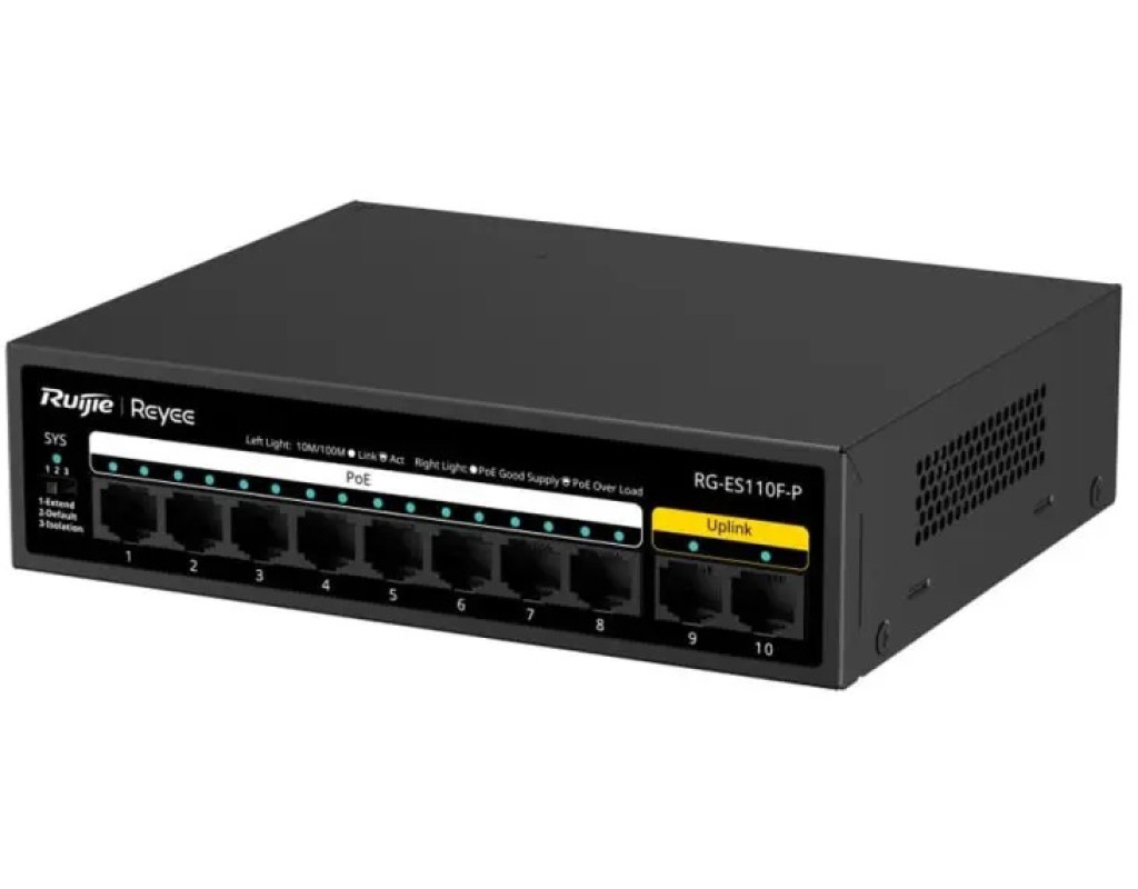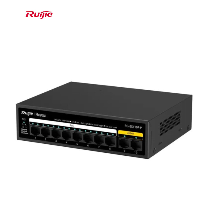 | Ruijie Reyee RG-ES110F-P — это компактный PoE коммутатор, подходящий для небольших сетей. Обеспечивает высокую производительность, стабильное соединение и питание для 8 устройств поддерживающих PoE, что делает его подходящим для малого бизнеса и домашних офисов. |