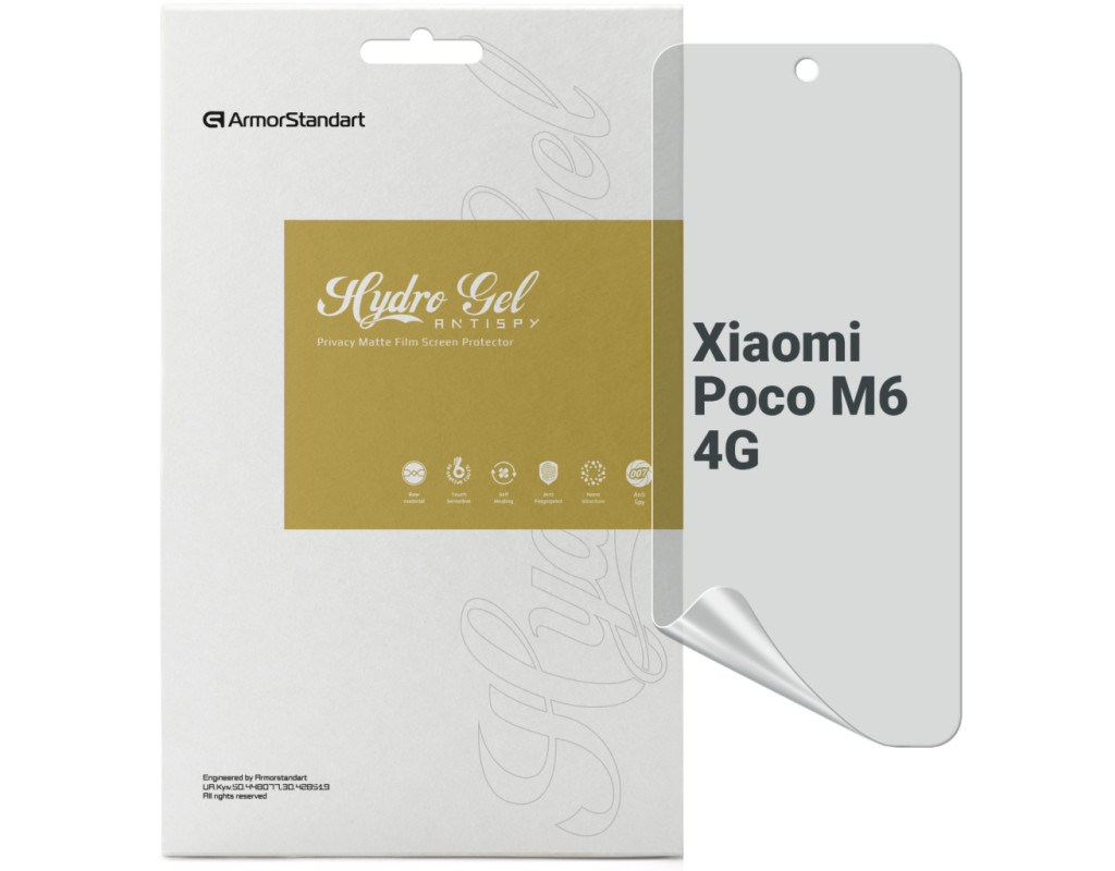Назначение - для телефона, Вид покрытия - конфиденциальное, гидрогелевая, Совместимость с моделями - Xiaomi Poco M6, Количество в упаковке - 1 шт