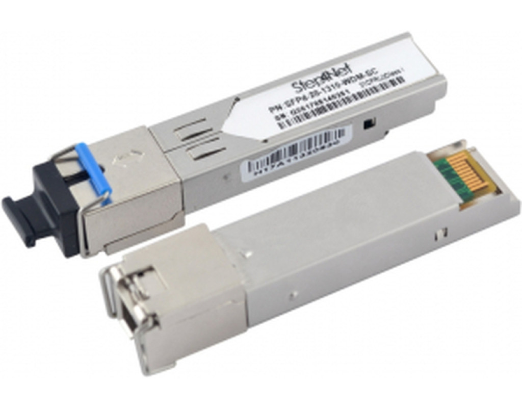 Модули Step4Net SFPd-20-1310-WDM предназначены для организации соединения по одному волокну одномодового оптического кабеля 9/125мкм по технологии WDM (Wavelength Division Multiplexing - мультиплексирование с разделением по длине волны). Модуль SFPd-20-1310-WDM работает в паре с модулем SFPd-20-1550-WDM. При этом модуль SFPd-20-1310-WDM передает данные на длине волны 1310nm, а принимает данные на длине волны 1550nm. С другой стороны модуль SFPd-20-1550-WDM передает данные на длине волны 1550nm, а принимает данные на длине волны 1310nm. Модули обеспечивают передачу данных на скорости 1.25Gbps/1.063Gbps на расстоянии до 20 км. Трансиверы оборудованы одним оптическим портом с разъемом LC (модуль SFPd-20-1310-WDM-LC), или SC (модуль SFPd-20-1310-WDM-SC). |