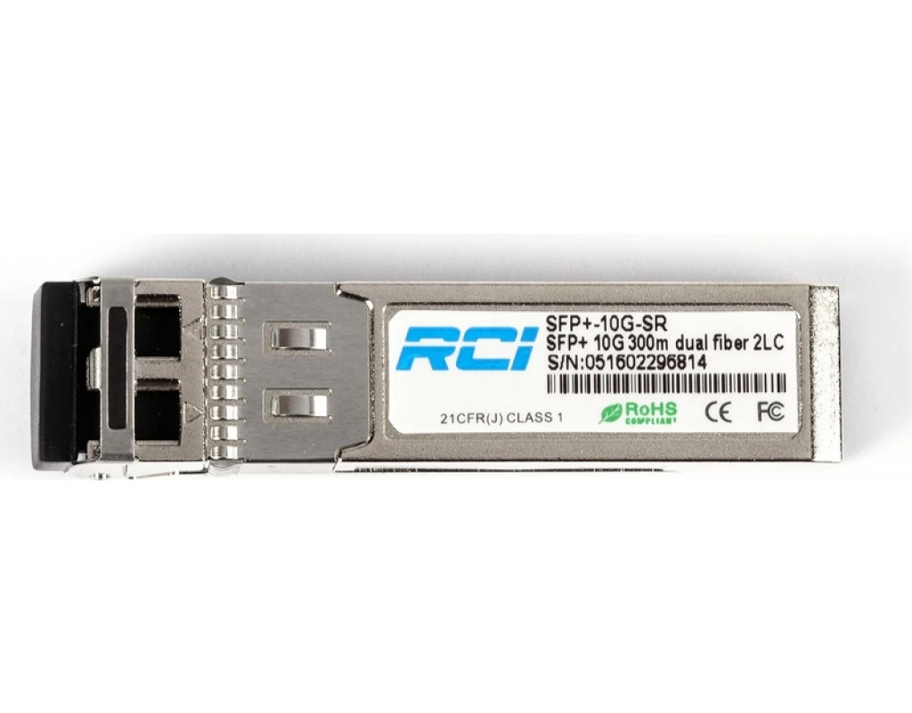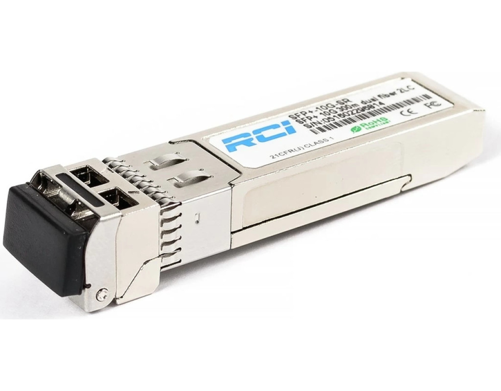 Модуль SFP+-10GB-SR служит интерфейсом передачи данных по двух волоконному многомодовому кабелю до 300 м, работает на номинальной длине волны 850 нм используя стандарты IEEE 802.3ae 10GBASE-SR/SW. SFP+ 20-ти контактный разъем дает возможность горячей замены. Область применения: