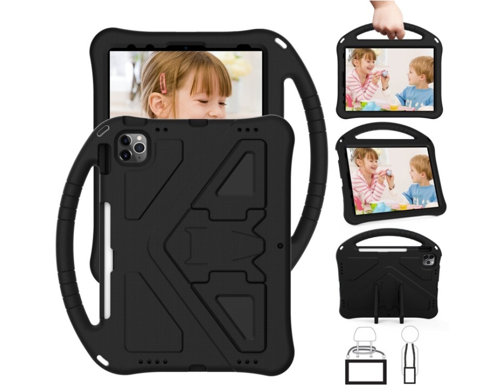 Тип - накладка, совместимость с моделями - Apple iPad Pro 12.9 2020, Apple iPad Pro 12.9 2021, Apple iPad Pro 12.9 2022, диагональ - 12.9, Способ крепления - держатель-рамка, Материал - полиуретан, термополиуретан, черный