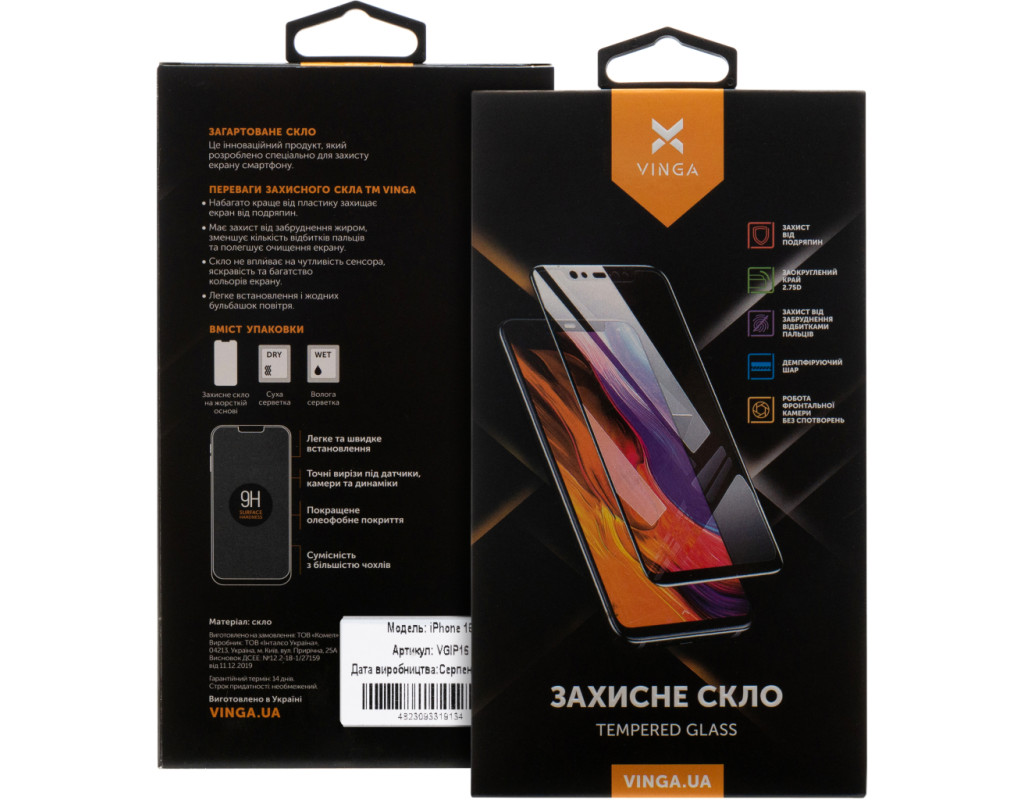 Стекло защитное Vinga Apple iPhone 16 (VGIP16)