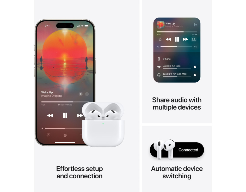 Мгновенное соединение AirPods 4 мгновенно подключаются к любому устройству, подключенному к вашему Apple ID. Просто поместите AirPods рядом с вашим iPhone или iPad и нажмите «Подключить». |