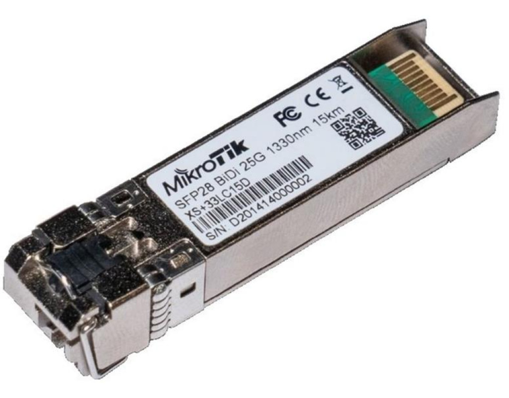 | MikroTik XS+2733LC15D - комплект из двух SFP+ модулей, которые можно использовать в качестве пары для достижения рабочей скорости передачи данных до 25 Gbps на расстояние до 15 км на одном оптическом кабеле. |