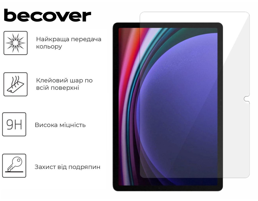 Стекло защитное BeCover Samsung Galaxy Tab S10 Plus (SM-X820/SM-X826)/S9 Plus (SM-X810/SM-X816) 12.4" (712271)