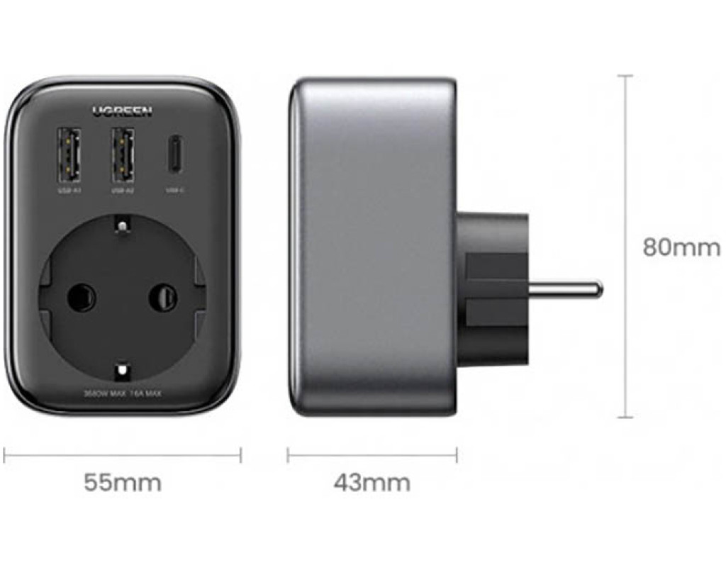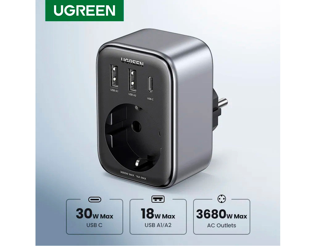 Зарядное устройство Ugreen 3xUSB 30W Outlet Extender (2хUSB-A+USB-C) CD314 (90613)