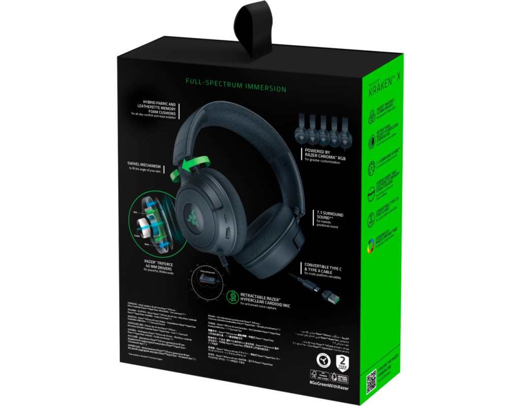 | Наушники Razer Kraken V4 X Black (RZ04-05180100-R3M1) – это воплощение передового дизайна и технологий для геймеров, которые ценят высокое качество звука и комфорт. Данная модель создана специально для тех, кто стремится погрузиться в мир игры с максимальной реалистичностью. Полноразмерная конструкция с оголовьем, совмещённая с полуоткрытым акустическим оформлением, предлагает оптимальный баланс звукоизоляции и комфорта, что позволяет наслаждаться игрой несколько часов подряд без чувства дискомфорта. Лёгкие амбушюры из ткани обеспечивают деликатный контакт с ушами, сводя к минимуму усталость, даже если вы погрузились в многочасовую сессию. Вес всего 300 граммов добавляет удобства в использовании и не утяжеляет голову. Одним из главных преимуществ являются высококачественные динамики Razer TriForce диаметром 40 мм. Они гарантируют точную передачу всех звуковых частот, от самых глубоких басов до кристально чистых высоких тонов, создавая по-настоящему богатый и объемный звук. Благодаря этим динамикам вы сможете услышать каждый звук в игре с невероятной детализацией, что обеспечивает преимущество в важных геймерских моментах. Функция активного шумоподавления позволяет отсеять фоновые шумы, обеспечивая полное погружение в виртуальный мир игры. Этот эффект подкрепляется поддержкой технологии звук 7.1, что дарит вам ощущение присутствия в центре событий на экране благодаря реалистичной многоканальной звуковой среде. Уникальность гарнитуры подчеркивает выдвижной кардиоидный микрофон Razer HyperClear, входящий в конструкцию. Благодаря своей чувствительности он передаёт ваш голос чётко и выразительно, снижая внешние шумы. Это особенно важно во время командных игр, где каждое слово может изменить ход событий. Гарнитура оснащена универсальным подключением через USB Type-C или USB Type-A, делая её совместимой с консольными системами, ноутбуками и компьютерами. Длина шнура в 1.8 метра позволяет свободно двигаться, не беспокоясь о его натяжении. Дополнительным преимуществом становится поддержка технологии Razer Chroma RGB, которая позволяет настраивать подсветку наушников в соответствии с вашим игровым настроением. С помощью более 16,8 миллионов цветов можно максимально персонализировать ваши впечатления от игры. Выбрав Razer Kraken V4 X Black, вы откроете для себя новую эру геймерских ощущений, где комфорт, стиль и бескомпромиссное качество идут рука об руку, даря вам каждый раз незабываемые впечатления от игры. |