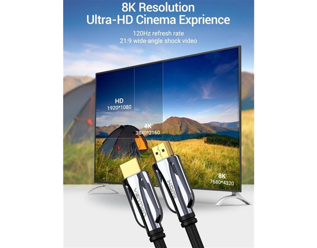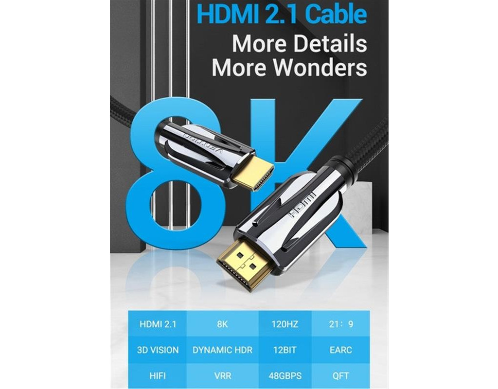 Кабель последнего поколения Vention HDMI 2.1 (AAL) имеет 3-х кратное увеличение пропускной способности до 48 Гбит/с (по кабелям стандарта HDMI 2.0 с пропускной способностью до 18 Гбит/с), поддержкой разрешения 8K (7680х4320) Ultra HD, технологии обновления (VRR), динамического HDR и автоматической регулировки латентности. Стандарт HDMI 2.1 унаследовал от предыдущих стандартов HDMI все основные преимущества, в частности поддержку статического HDR, двух потоков видеоданных, четырех аудиоданных потоков, Ethernet-канала с пропускной способностью 100 Мбит/с, 3D-возможности, Blu-ray, а также поддержку более 8 каналов аудио Поддержка разрешения 8К (7680 х 4320 пискелей) Кабель Vention HDMI 2.1 обеспечивает более высокое разрешение и более высокую частоту кадров. Версия HDMI 2.1 даст нам 4K на 120 Гц, 8K на 60 Гц и даже 10K для коммерческих инсталляций. Также высокая частота кадров очень важна для геймеров. Изображение 3D Кабель поддерживает передачу 3D изображения, способного передать зрителю эффект глубины. Динамический HDR Расширенный динамический диапазон (HDR) – это важнейшее улучшение изображения со времен появления Full HD. Данный формат постоянно изменяет динамический диапазон картинки в зависимости от происходящего на экране, в результате чего мы получаем более точное, яркое и динамическое изображение. Кабель Vention HDMI 2.1 подходит для всех видов HDR, включая стандартный HDR10 и более современный Technicolor HDR. Функция eARC Стандарт HDMI eARC открывает возможность передавать аудио с телевизора на ресивер или саундбар и наоборот. В отличие от HDMI ARC, новый стандарт HDMI eARC позволяет не сжимать аудио, передавая его в высоком разрешении по HDMI 2.1. Такая функция обеспечивает возможность подключения любых устройств к телевизору и вывод сигнала по одному кабелю HDMI на ресивер или саундбар. Функция VRR Кабель поддерживает функцию динамического изменения частоты обновления (Variable Refresh Rate), что позволяет устранить заикание и отставание путем синхронизации частот обновления с изменяющейся частотой кадров в видеоигре. Функция VRR делает движение дисплея более плавным, несмотря на разную частоту кадров. Широкая совместимость Кабель позволяет подключать любой источник видеосигнала к разным устройствам отображения, например, телевизору, проектору или монитору. 3 режима отображения Кабель поддерживает 3 различных режима отображения: зеркальный, расширенный и многоэкранный. Индивидуальный и общий экран Индивидуальные экраны из фольги плюс общий экран с металлической оплеткой, надежно защищает от внешних и перекрестных помех. Позолоченные контакты и нейлоновая оплетка Кабель оснащен с двух сторон разъемами HDMI, покрытыми слоем золота для превосходной передачи данных и долговечности в эксплуатации. Также кабель имеет нейлоновое тканевое оплетение, что делает его эстетичным и износостойким. |