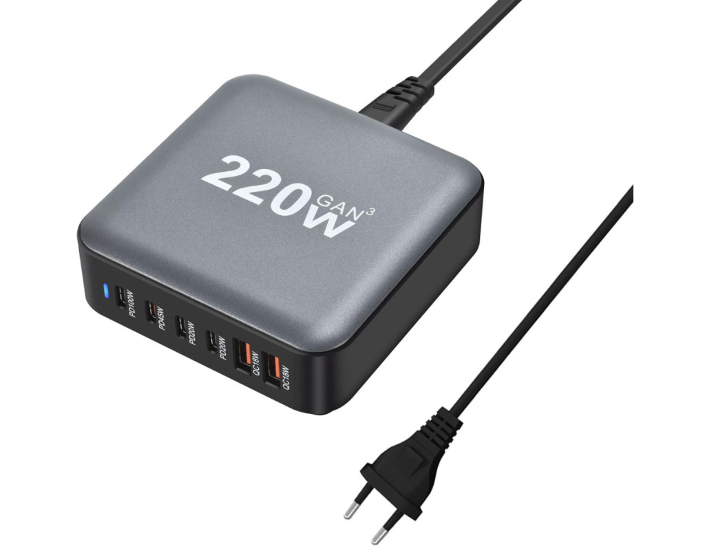 Зарядное устройство GAN 3 QC-220-200W PD100 PowerCharge – это очень мощное универсальное зарядное устройство с общей максимальной мощностью зарядки 200 Вт и технологией Power Delivery (PD100). Главное отличие этого зарядного устройства: