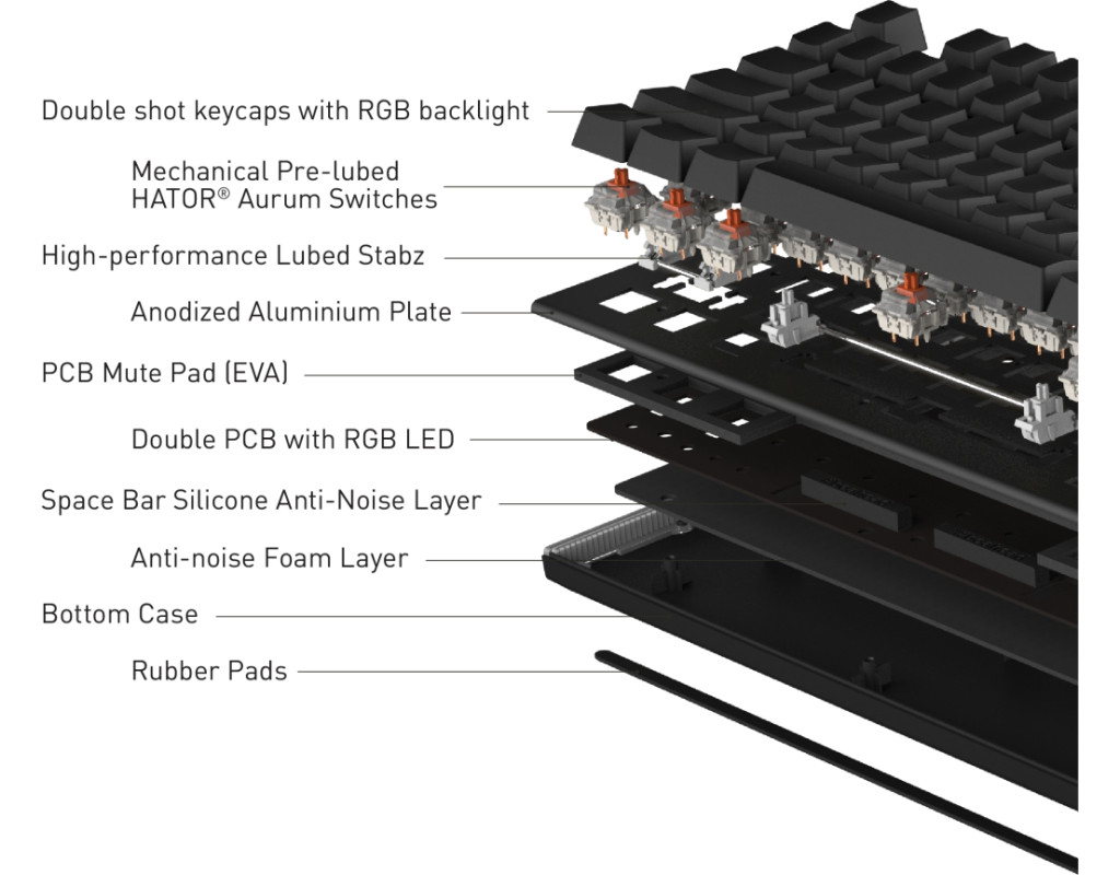 | Клавиатура Hator Gravity X TKL Orange USB White (HTK551UA) — это отличный выбор для геймеров и профессиональных пользователей, которые ценят высокую производительность и надежность. Она сочетает в себе современные технологии, качество материалов и стильный внешний вид, обеспечивая высший уровень комфорта при использовании. Компактный формат TKL делает эту клавиатуру идеальной для любого рабочего пространства. Изготовленная из прочной алюминиевой пластины, она не только повышает устойчивость устройства, но и эффективно поглощает вибрации, снижая уровень шума. Благодаря специальной конструкции skeleton, клавиши надежно защищены от пыли и грязи, что обеспечивает долговечность эксплуатации. Сердце этой клавиатуры — механические линейные переключатели Hator Aurum Orange. Они имеют нейлоновую базу, а стем изготовлен из высококачественного POK пластика. Контакты переключателей покрыты композитным золотом, что повышает их износостойкость. Благодаря двойной системе шумоизоляции, эта клавиатура значительно снижает лишний шум и вибрацию, обеспечивая комфорт во время игры или работы. Премиальные стабилизаторы из POM полимера, смазанные вручную, гарантируют четкость и стабильность каждого нажатия. RGB подсветка с поддержкой 16.8 миллиона цветов не только делает устройство эстетичным, но и позволяет индивидуально настраивать подсветку каждой клавиши. Для дополнительной атмосферы предусмотрены боковые зоны с настраиваемым светом. Такое внимание к визуальным деталям делает это устройство не только функциональным, но и настоящим элементом декора для вашего рабочего стола. Съемный мягкий кабель USB Type-A — Type-C еще больше увеличивает удобство использования. Эта клавиатура поддерживает программное обеспечение для создания и сохранения макросов, что позволяет настроить её под собственные нужды. Благодаря поддержке пользовательских прошивок на базе QMK и возможности использования интерфейса VIA, вы можете получить высший уровень кастомизации функций. С совместимостью со всеми популярными операционными системами, такими как Linux, Android, Windows и Mac OS, это устройство станет универсальным инструментом для любого пользователя. Функции 100% Anti-ghosting и N-Key Rollover, которые гарантируют точность даже при многоклавишных комбинациях, только усиливают уникальность этой клавиатуры. Выбрав Hator Gravity X TKL Orange USB White, вы получите первоклассный инструмент с неограниченными возможностями настройки и чрезвычайной надежностью для истинных профессионалов. |