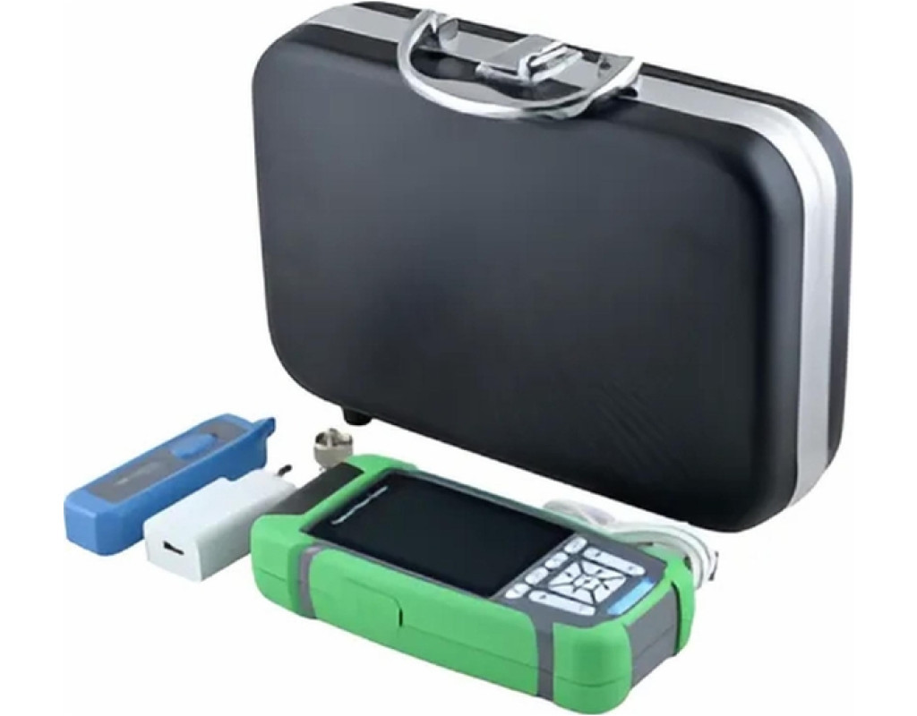 В приборе компактного размера Multitest MO1235N совмещены целых пять функций. По-настоящему универсальный прибор для конвергентных сетей передачи данных, которые сочетают в себе волоконно-оптические сети и «медные» сети на основе симметричного кабеля «витая пара». Основная функция – оптический рефлектометр с динамическим диапазоном 26дБ на длине волны 1310 нм и 24 дБ на 1550 нм. Это позволит пользователю измерять оптические линии до 60 км, с последующим сохранением результатов на внутреннюю память или microSD. У прибора имеется цветной 3.5” LCD дисплей, на котором можно увеличить интересующее событие рефлектограммы. При необходимости, прибор сможет представить оптическую линию в виде структурной схемы с ключевыми точками (Event Map) на основании измеренных событий. Для измерений вносимого затухания или уровня сигнала в оптической линии в приборе имеются измеритель мощности и источник излучения. Измеритель мощности калиброван на длины волн 850, 980, 1300, 1310, 1490, 1550, 1625 и 1650 нм. Высокий верхний уровень диапазона измерений -50…+26 дБм, позволяет использовать прибор для поверки с мощных оптических сигналов, например в сетях оптического кабельного ТВ. Измеритель, при необходимости, возможно откалибровать по эталонному уровню. Источник излучения на 2 длины волны 1310 и 1550 нм с возможностью модуляции частотами 270, 330, 1000 и 2000 Гц. Для визуального обнаружения дефектов или идентификации ОВ, прибор оснащен источником видимого излучения (VFL) – красный свет с длиной волны 650 нм. При переходе от оптической части сети к проводке на витой паре, тестер позволяет не только проверить правильность распиновки в коннекторах и наличие обрывов, но и длину медного кабеля. А наличие в комплекте трассопоискового щупа позволяет проверить прохождение трассы кабеля (Tracker) при скрытой проводке, локализовать места обрывов. Рефлектометр компактен, выполнен в прорезиненном корпусе, разъемы защищены от загрязнения и попадания влаги заглушками. Показания на дисплее хорошо видны в темноте, а светодиодный фонарик поможет, при необходимости, в плохо освещенном месте. Питается прибор от Li-Ion аккумулятора 4000 мА*ч. Зарядка аккумулятора производится через порт microUSB. Оригинальной особенностью данного изделия является его поставка в удобном кейсе. Прочный пластиковый корпус кейса с алюминиевыми накладками, стальная ручка и замковая защелка, пластиковые ножки для вертикальной установки. Все части комплекта уложены в пазах полипропиленовой вставки на дне кейса. Таким образом, кроме эстетических преимуществ получается выигрыш в эргономике, удобстве хранения комплектующих и дополнительной механической защите прибора. Основные особенности: