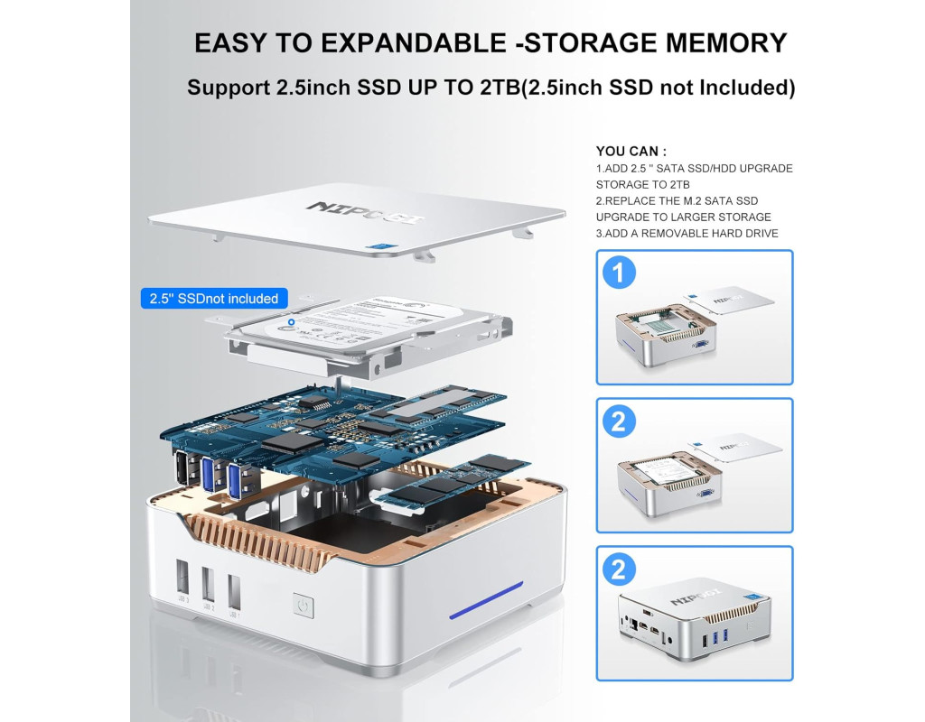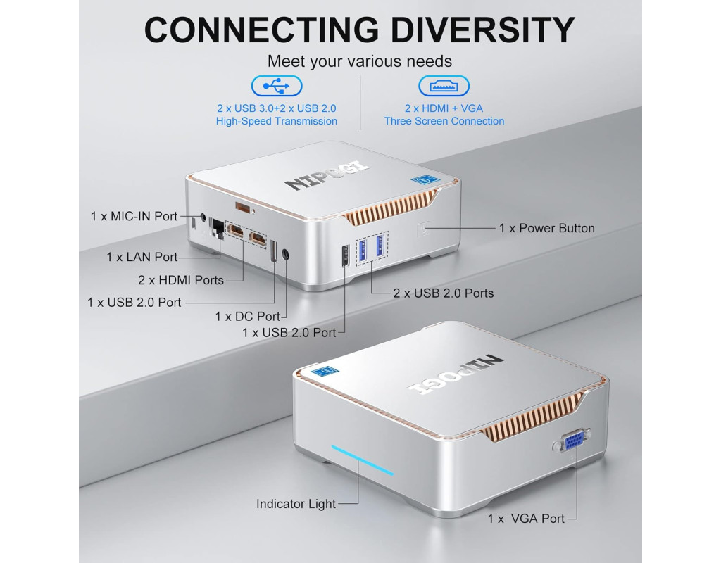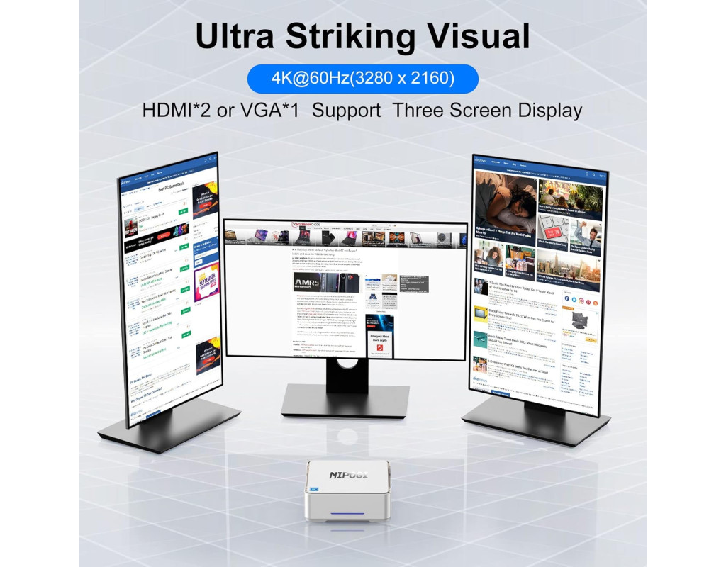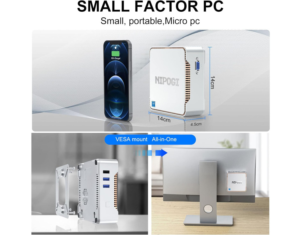 Этот мини компьютер оснащен процессором Celeron J4125, что значительно быстрее среднего Celeron J3455 J3160 N3450 N4020 и Atom Z8350. Этот процессор развивает турбо частоту до 2,7 ГГц, способен выполнять несколько задач одновременно. NiPoGi GK3V предлагает отличную производительность для HTPC (домашний кинотеатр, персональный компьютер), NAS, и многое другое. Большое хранилище Мини ПК поставляется с 12 ГБ DDR4 (встроенной) и 128 ГБ SATA M.2 2280 SSD, также поддерживает добавление 2,5-дюймового внутреннего жесткого диска, SSD можно обновить до 2 ТБ, и вы также можете подключить внешний жесткий диск через 2 порта USB 3.0. Наслаждайтесь высокой скоростью обмена файлами, онлайн-играми и интернет-серфингом. Пора освободиться от громоздкого рабочего стола! Портативный и компактный Мини ПК NiPoGi размером всего 14x14x4,5 см, верните свой рабочий стол домой. Лучший выбор для работы на дому/в офисе, бизнесе, встречах, путешествиях. Небольшой размер и малый вес экономят место и ПК может быть положен в карман, функции и использования более чем мощные и большие. Мини ПК может широко использоваться в офисе/образовании/доме/правительстве/для развлечений/POS/системы наблюдения/для проектора/принтера и т.д. Домашний кинотеатр 4К Мини настольный ПК со встроенной видеокартой UHD 600 поддерживает 4K HD на трех экранах через 2x HDMI + 1x VGA. Через переключатель монитор/телевизор, он становится мультимедийным ПК, откройте себе реалистичное изображение на видео/фото, сделайте ваш дом настоящим кинотеатром. Наслаждайтесь эффектом настоящего кинотеатра с семьей и друзьями, не выходя из дома. Порты на все случаи жизни Расширенные возможности подключения, включая встроенные 2 x USB 3.0, 2 x USB 2.0, 1 x Gigabit Ethernet, 2 x HDMI 2.0 и 1 x VGA, 1 x 3,5 мм разъем для наушников, двухдиапазонный WiFi, Bluetooth 4.2 , поддержкой RTC-будильника, автоматическим включением, пробуждением сети, загрузкой PXE и ??т.д. Это улучшает производительность, компьютер для бизнеса, студентов и повседневного использования. |
