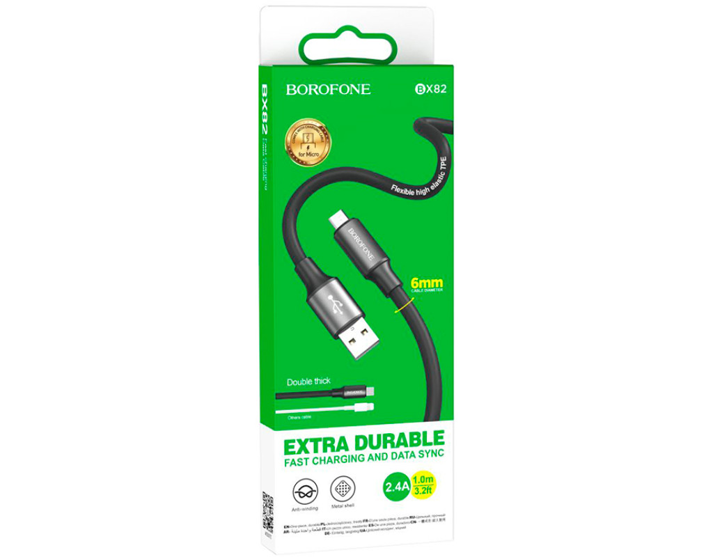 | Універсальний кабель для заряджання та синхронізації пристроїв з роз`ємом Micro USB. Забезпечує стабільне підключення та швидке заряджання гаджетів з підтримкою струму до 2.4А. Міцна конструкція з посиленими з`єднаннями гарантує тривалий термін служби. Технічні характеристики: - Модель: Borofone BX82 - Тип підключення: USB Type-A (стандартний) → Micro USB - Довжина: 1 метр - Максимальний струм: 2.4А - Швидкість передачі: до 480 Мбіт / с (USB 2.0) - Матеріал провідників: безкиснева мідь 28AWG - Ізоляція: зносостійкий ПВХ - Обплетення: щільна тканинна - Сумісність: - Смартфони та планшети з Micro USB - Зовнішні акумулятори (Power Bank) - Електронні книги - Цифрові камери - Інші пристрої з Micro USB - Особливості конструкції: - Посилені місця з`єднань - Алюмінієві вставки на роз`ємах - Стійкість до перегинів - Позолочені контакти Застосування: 1. Швидке заряджання пристроїв від мережі або комп`ютера 2. Передача даних між пристроями 3. Підключення до Power Bank 4. Синхронізація з ПК чи ноутбуком 5. Використання з автомобільними зарядними пристроями Переваги: - Підтримка прискореної зарядки до 2.4А - Оптимальна довжина для зручного використання - Міцна конструкція із захистом від перегинів - Широка сумісність із пристроями - Надійні контакти для стабільного з`єднання Кабель Borofone BX82 - надійне рішення для повсякденного використання, що поєднує якість та функціональність. Підходить для дому, офісу та подорожей. |